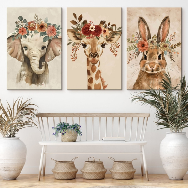 Animales en la selva al estilo safari, boho: mono, león, jirafa