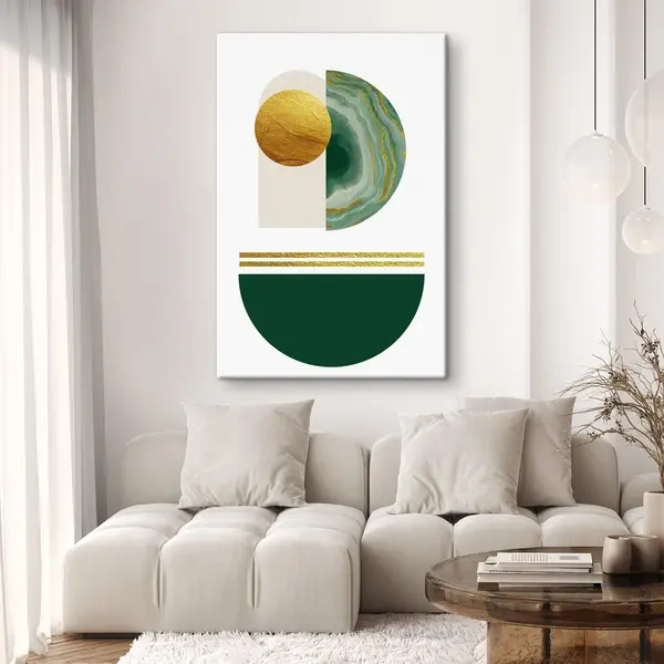 Cuadros Semicírculos geométricos verdes y círculo amarillo Nr s35986
