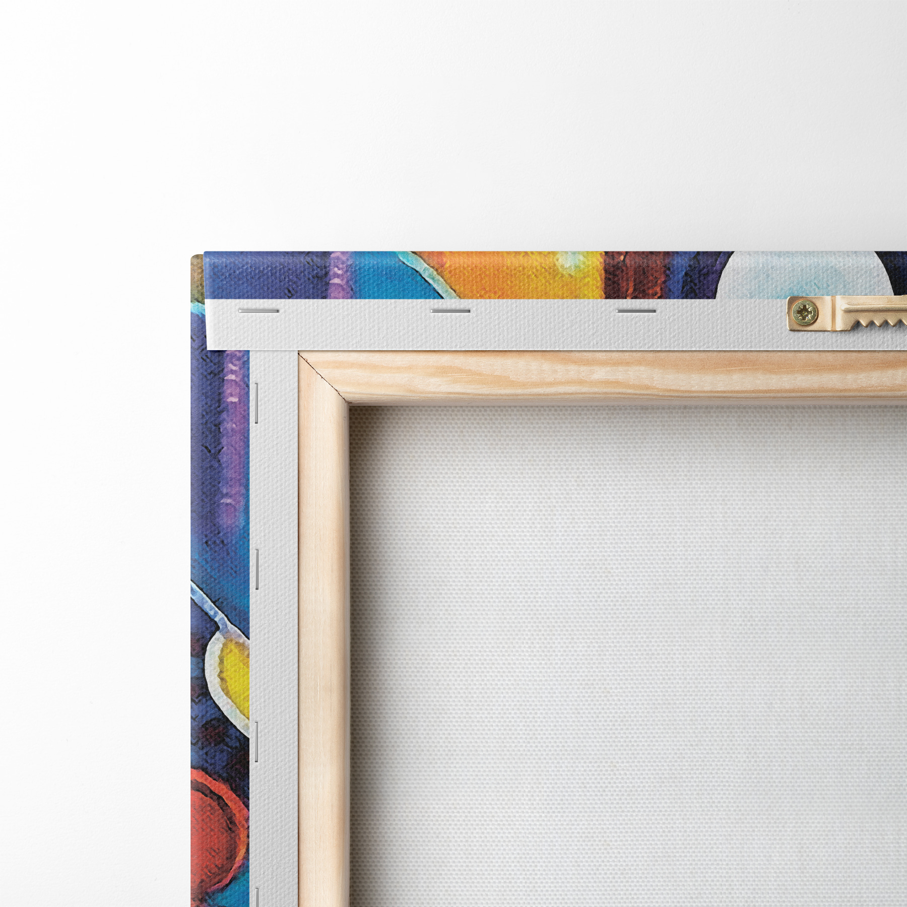 Vendemos cuadros en bastidor: se trata de un marco de madera sobre el que se extiende el lienzo. Este cuadro no necesita marco; puedes colgarlo directamente en la pared.