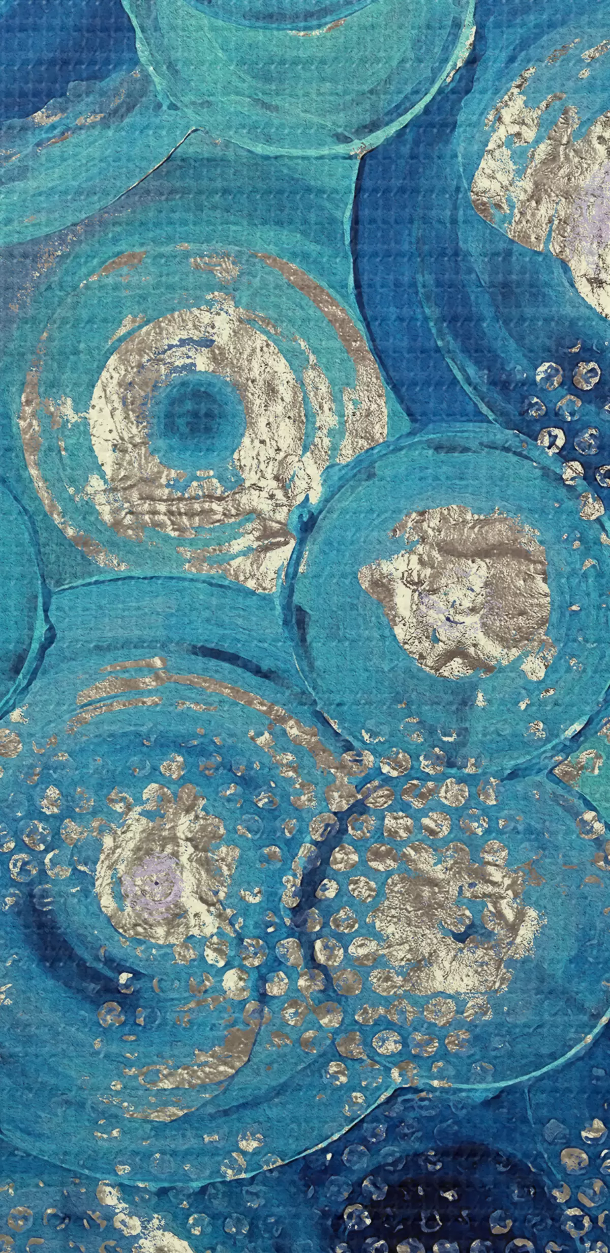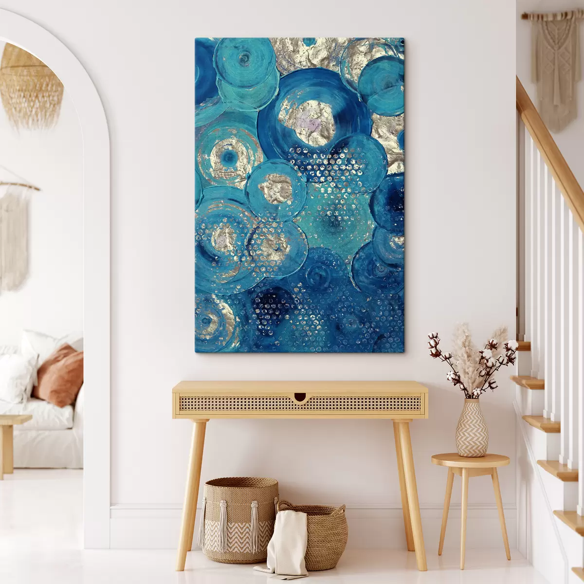 murales de pared Círculos azules con puntos dorados, pinturas al óleo. s01035