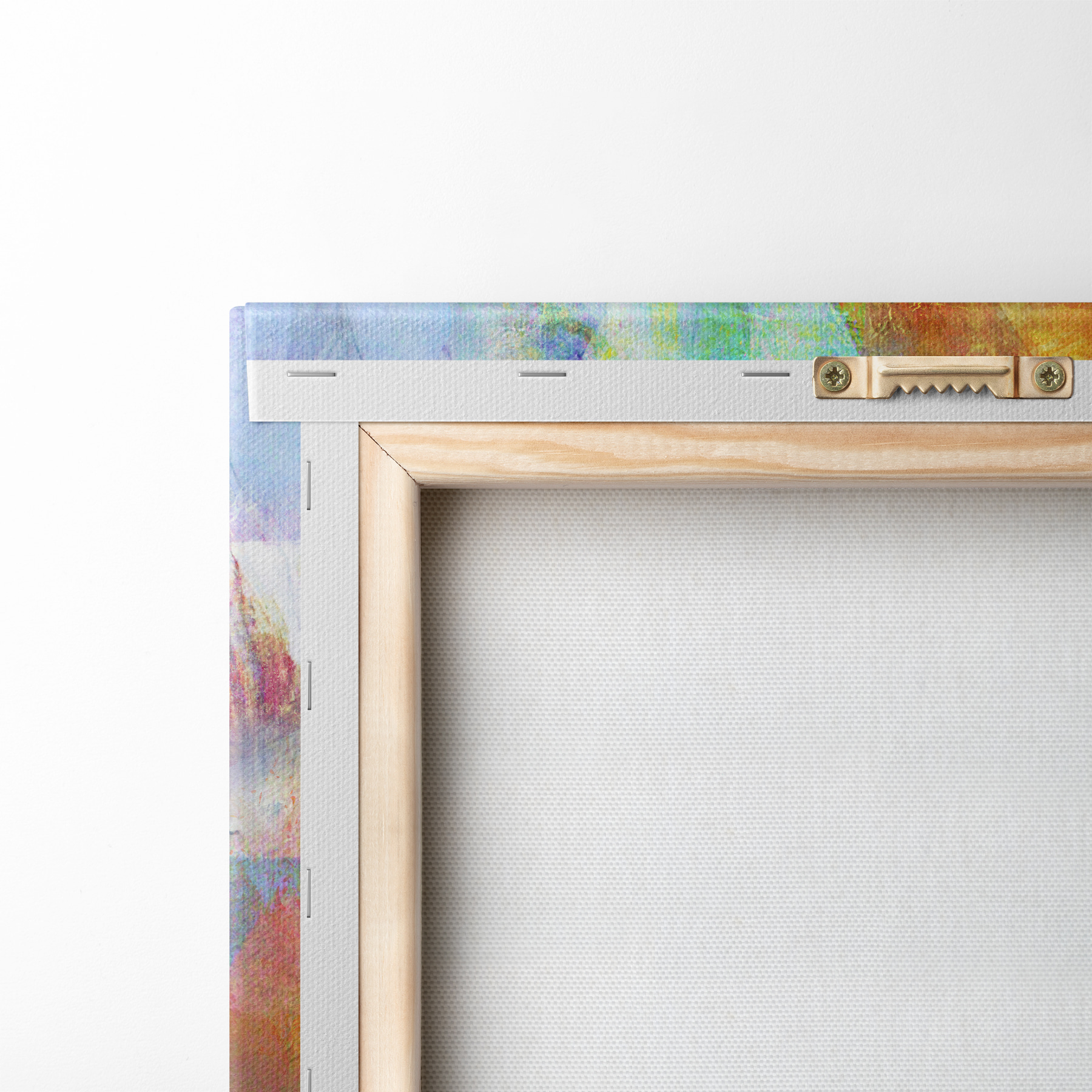 Vendemos cuadros en bastidor: se trata de un marco de madera sobre el que se extiende el lienzo. Este cuadro no necesita marco; puedes colgarlo directamente en la pared.