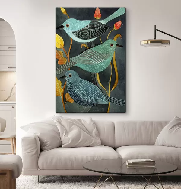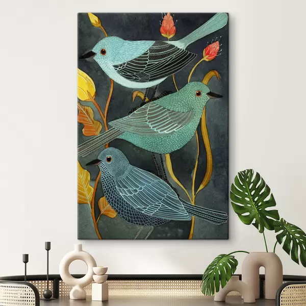 Cuadros Tres pájaros miran a su alrededor Nr s03061
