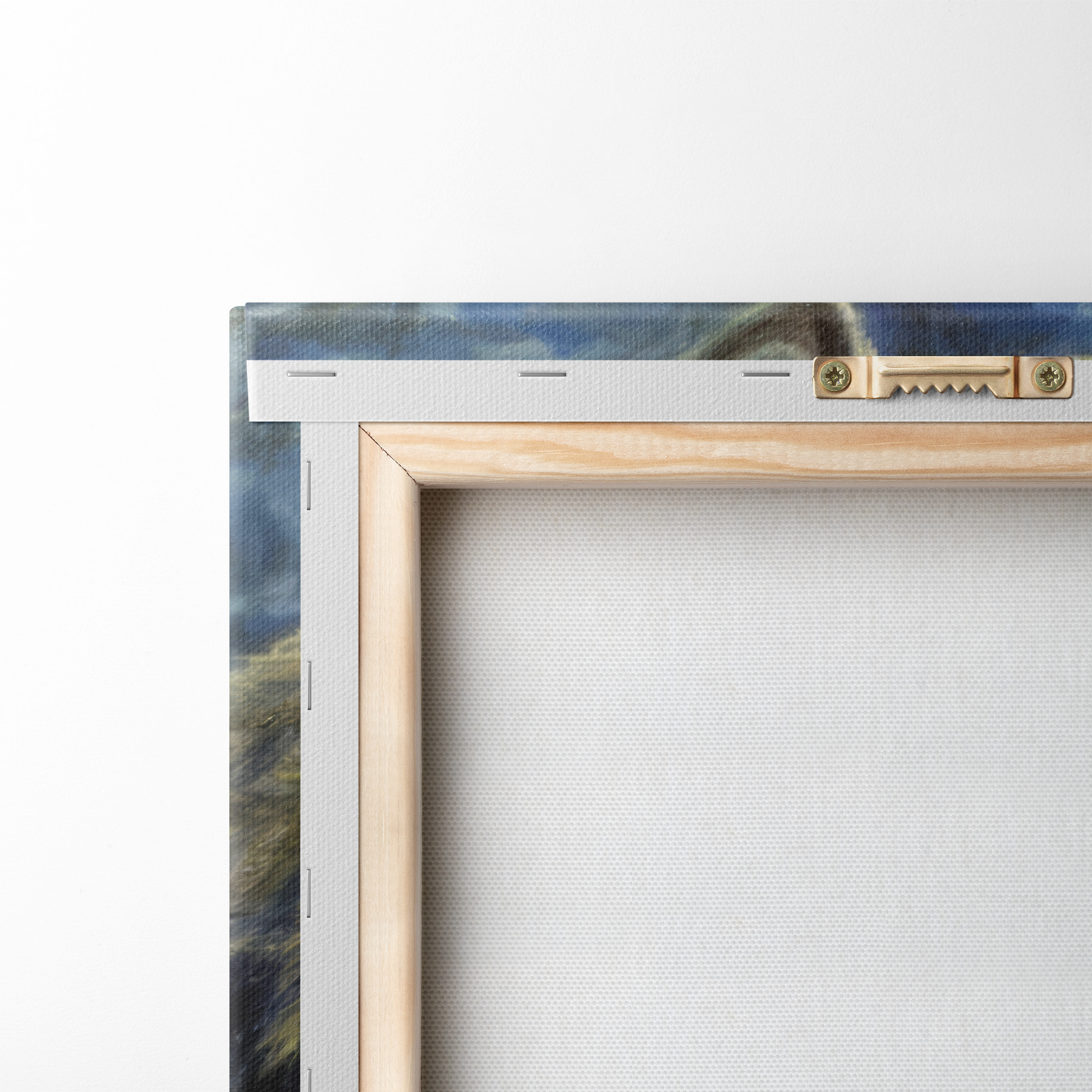 Vendemos cuadros en bastidor: se trata de un marco de madera sobre el que se extiende el lienzo. Este cuadro no necesita marco; puedes colgarlo directamente en la pared.