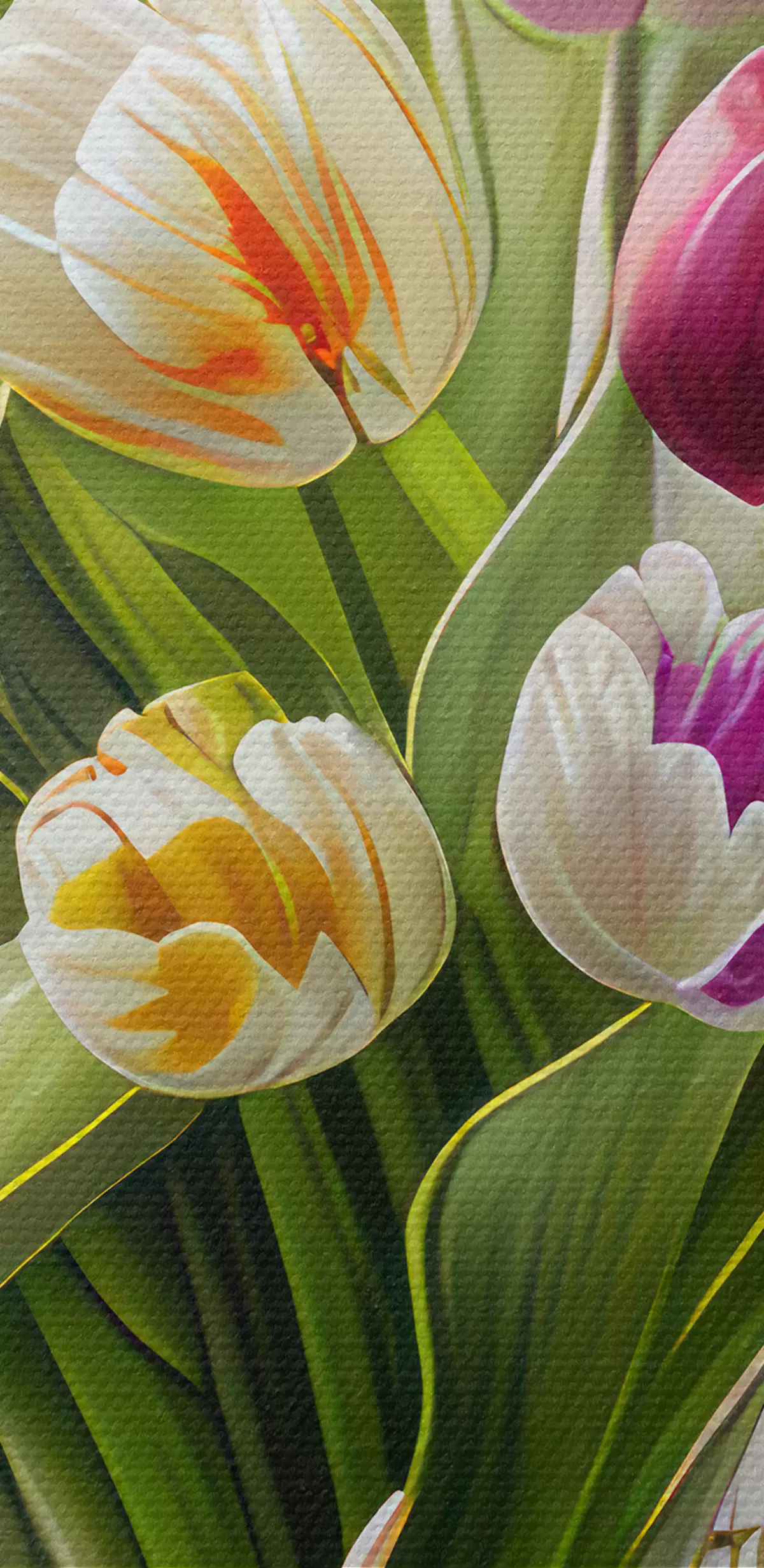 Hay tres tipos de material disponibles para pedidos: Lienzo Económico - material denso y duradero para impresión digital, idéntico al lienzo de pintor, superficie impermeable, reproducción realista de los detalles, material de grano medio. Lienzo Premium - la textura se asemeja a la de un lienzo de pintor (pequeños hilos entrelazados). Reproducción suave y detallada de la imagen sobre una superficie mate. Eco-Premium - tejido 100% algodón de alta calidad. Gracias a las fibras naturales de algodón, el material es duradero y resistente al desgaste. Excelente reproducción del color y el detalle.