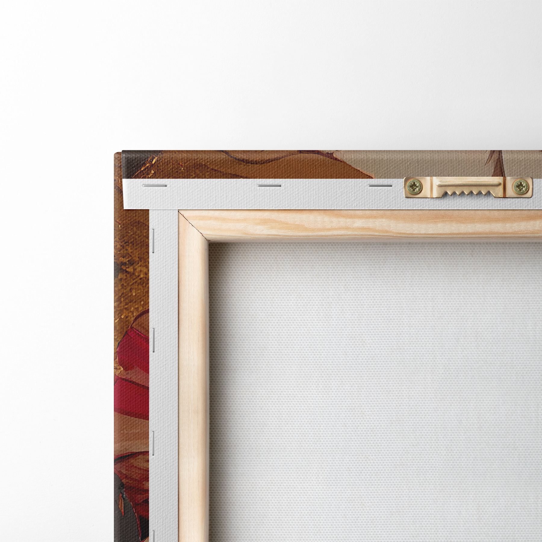 Vendemos cuadros en bastidor: se trata de un marco de madera sobre el que se extiende el lienzo. Este cuadro no necesita marco; puedes colgarlo directamente en la pared.