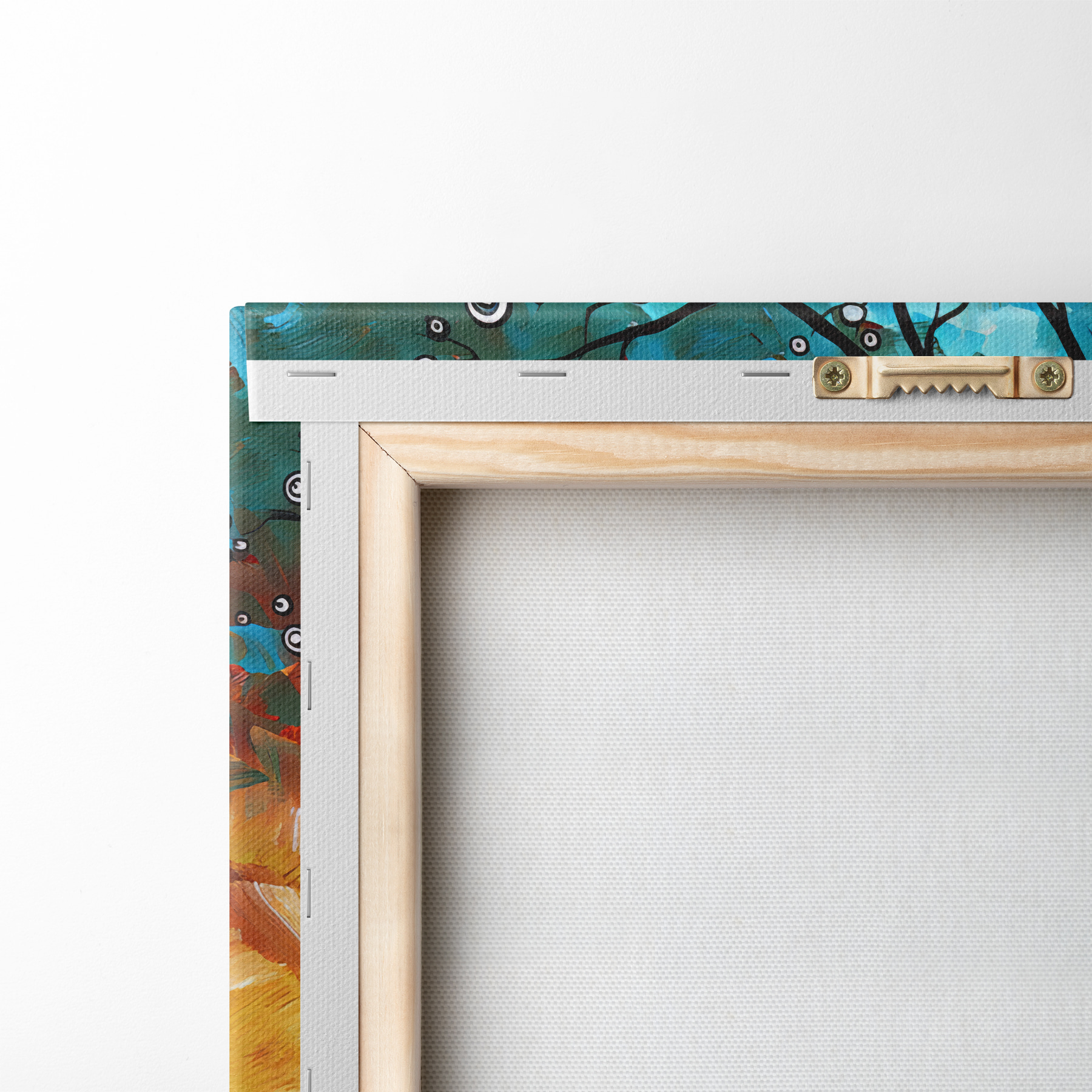 Vendemos cuadros en bastidor: se trata de un marco de madera sobre el que se extiende el lienzo. Este cuadro no necesita marco; puedes colgarlo directamente en la pared.
