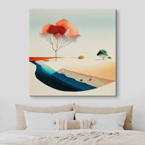 Cuadros Árboles vibrantes en medio de un paisaje minimalista Nr s35709