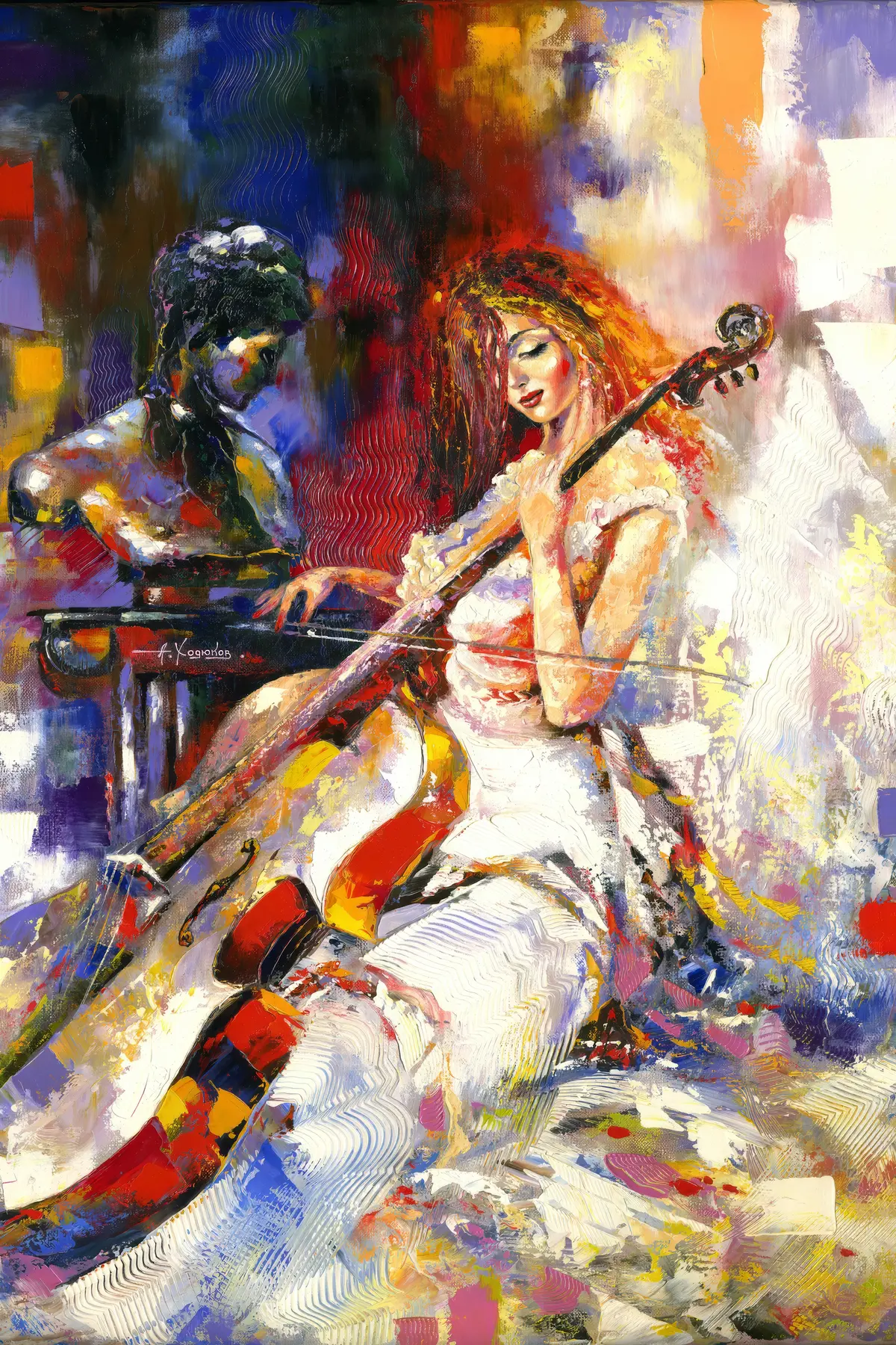 Cuadros Pintura, pintura artística e instrumento musical. Nr s16795