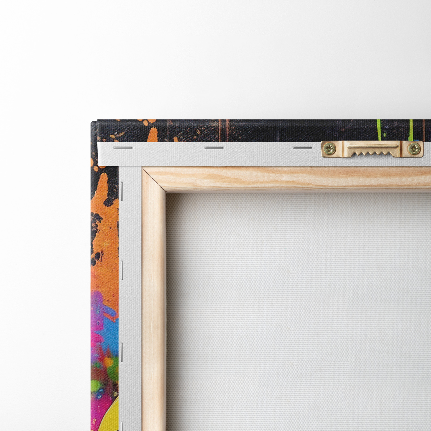 Vendemos cuadros en bastidor: se trata de un marco de madera sobre el que se extiende el lienzo. Este cuadro no necesita marco; puedes colgarlo directamente en la pared.