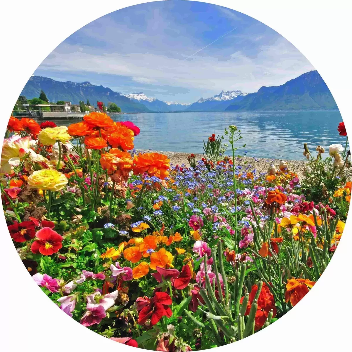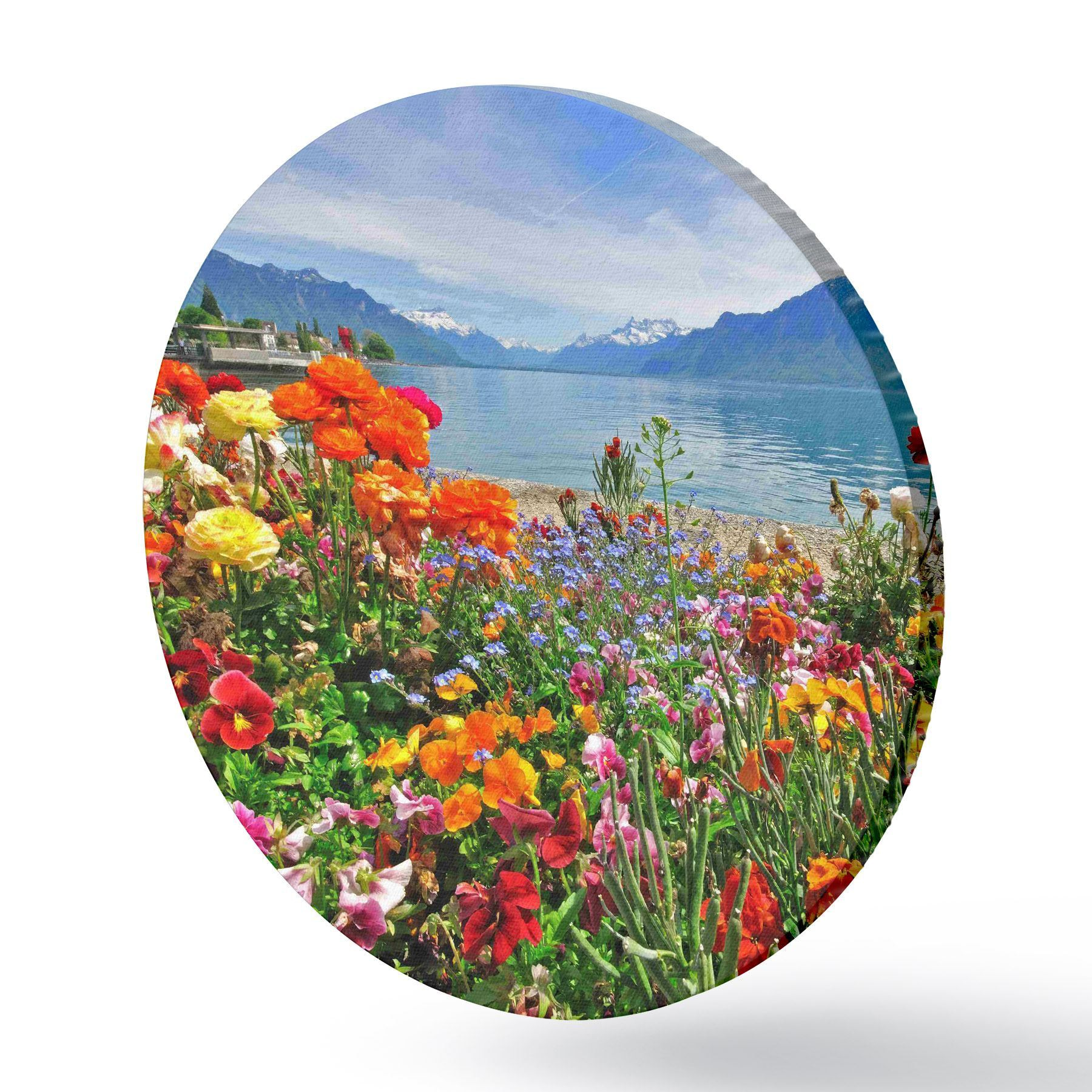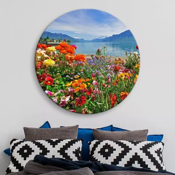 Cuadros redondos Agua, cielo y flores r00006