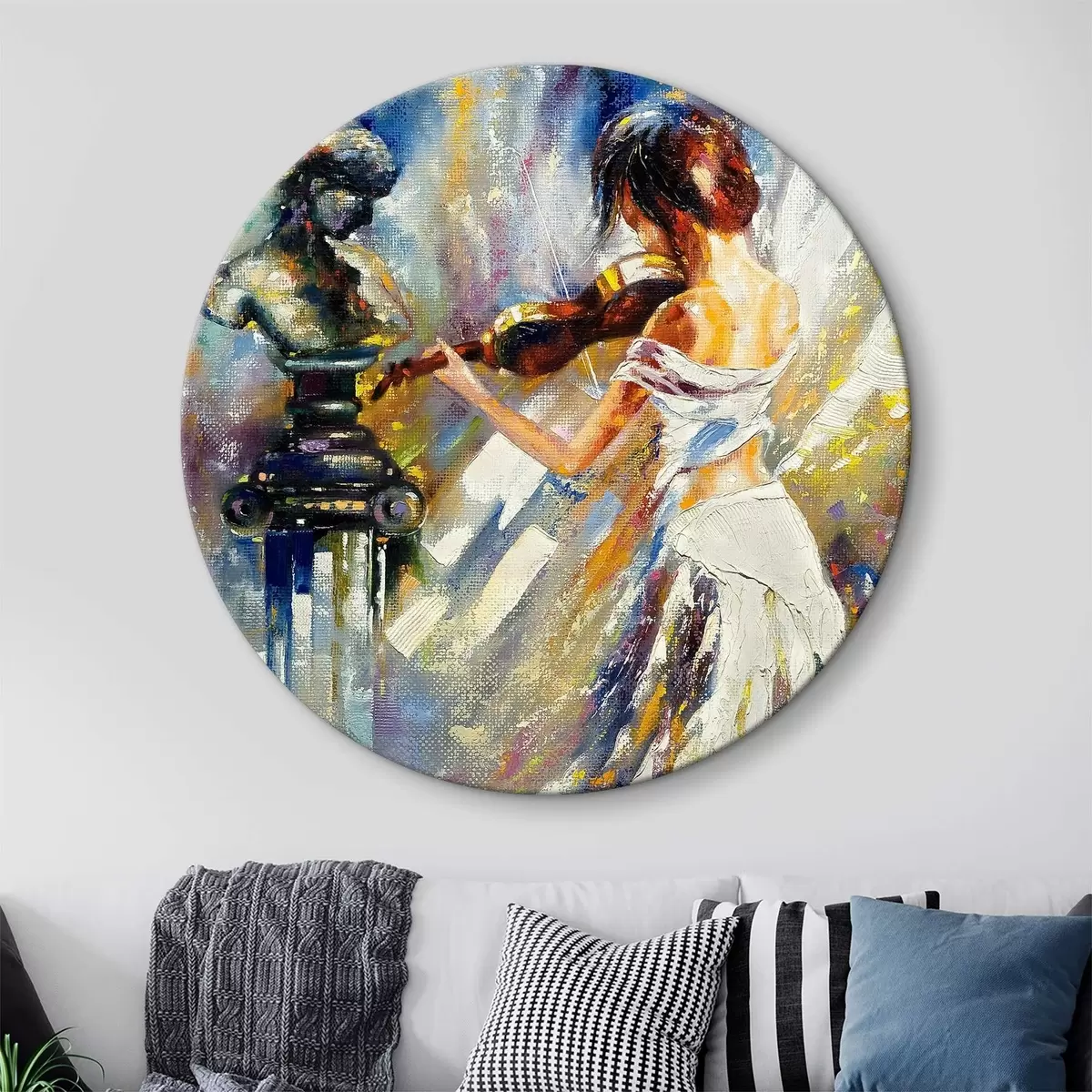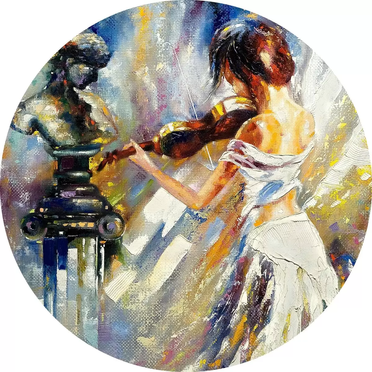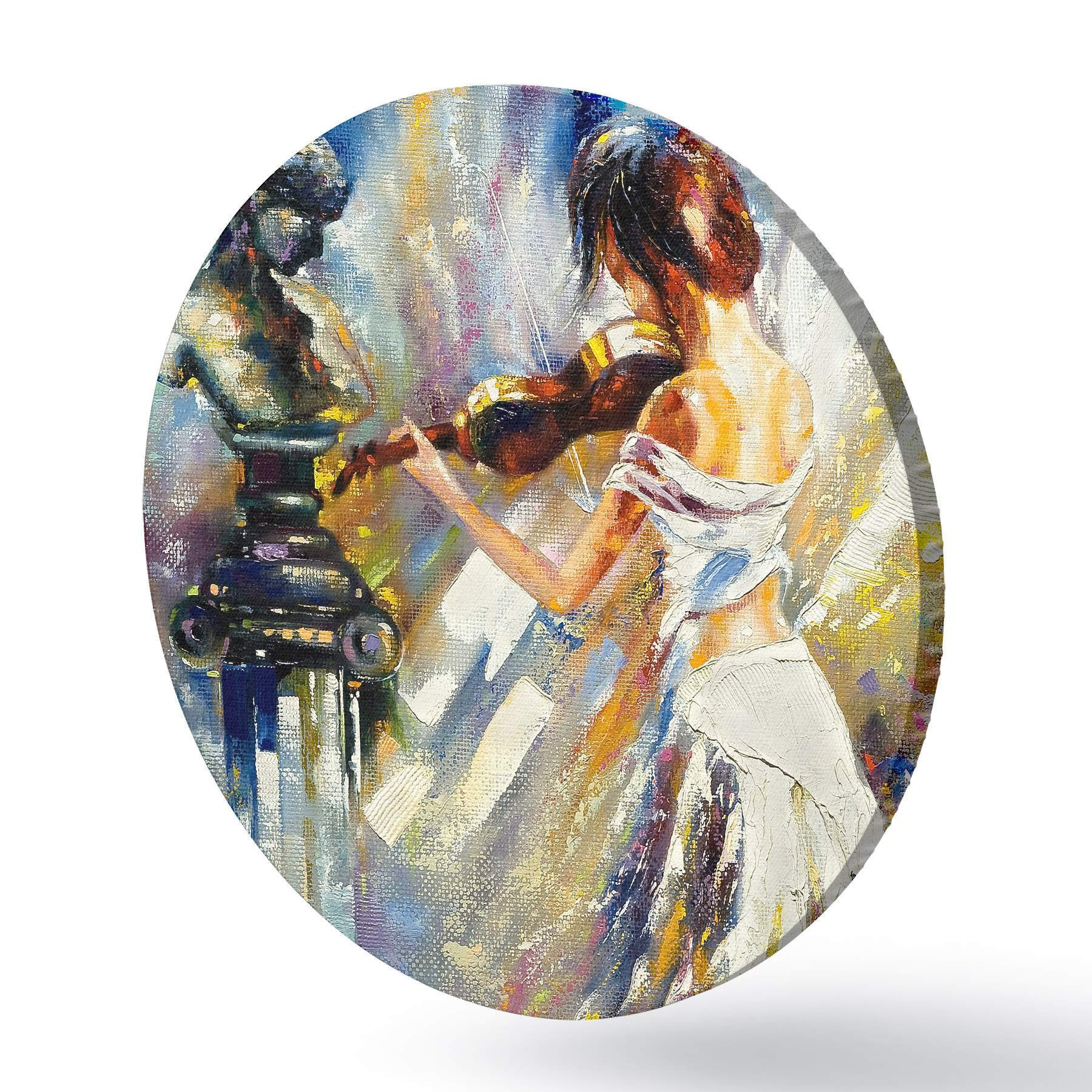 Cuadros redondos Violinista, pintura al óleo r04222