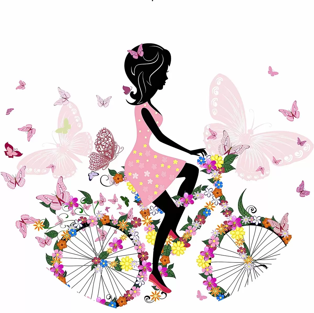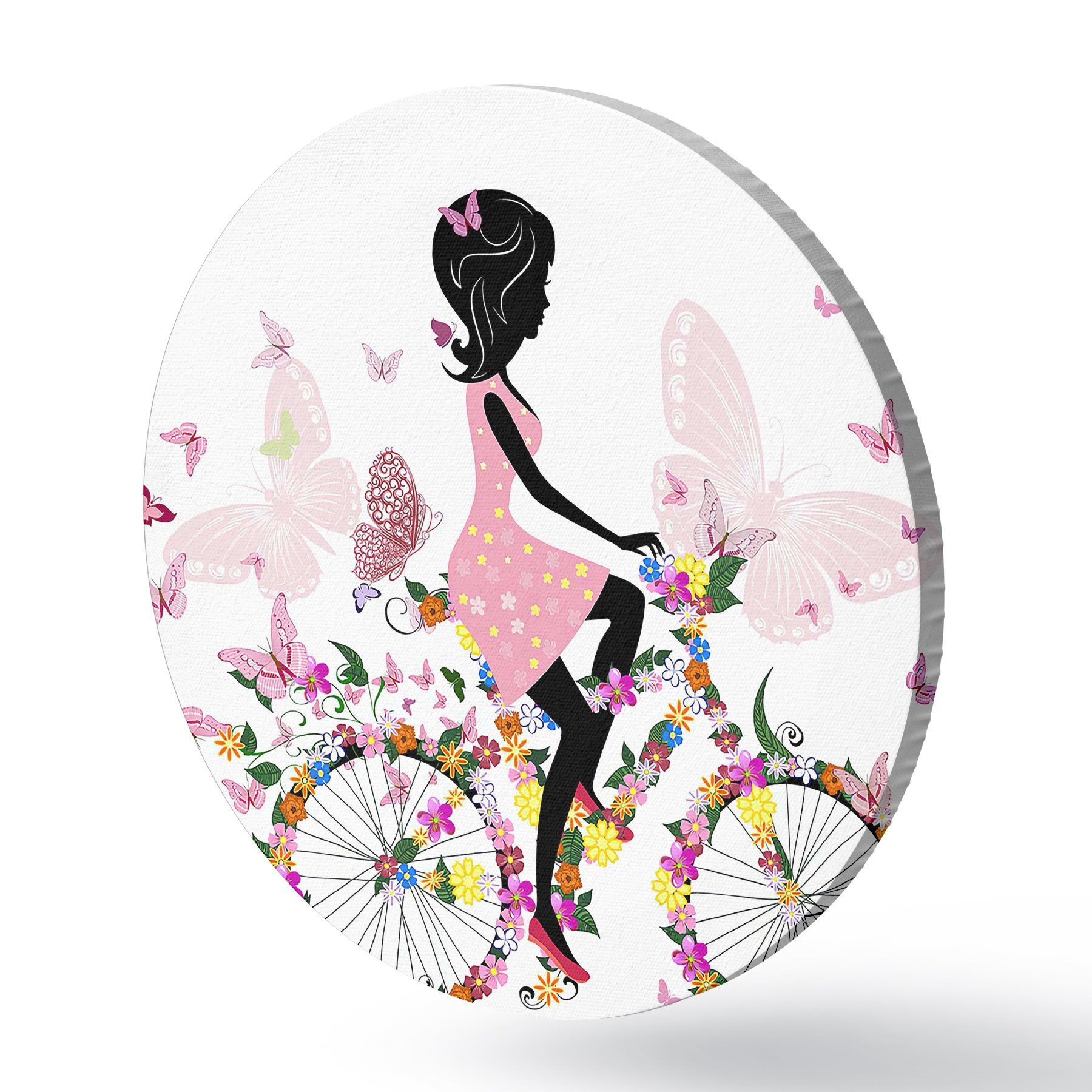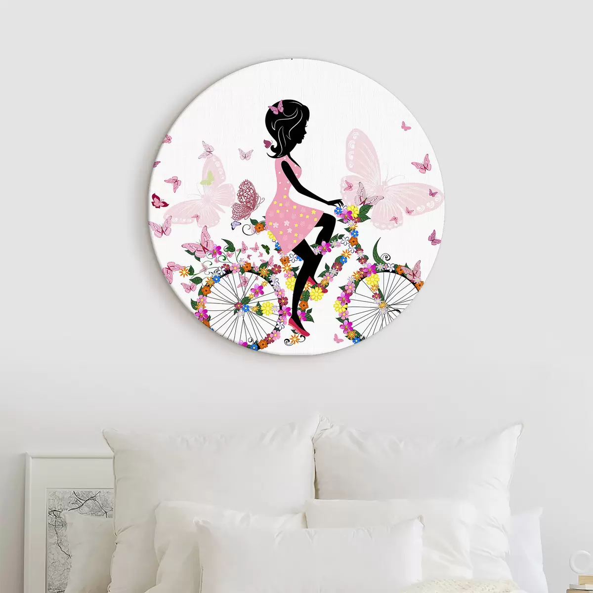 Cuadros redondos Bicicleta, personas en la naturaleza y flor r08603