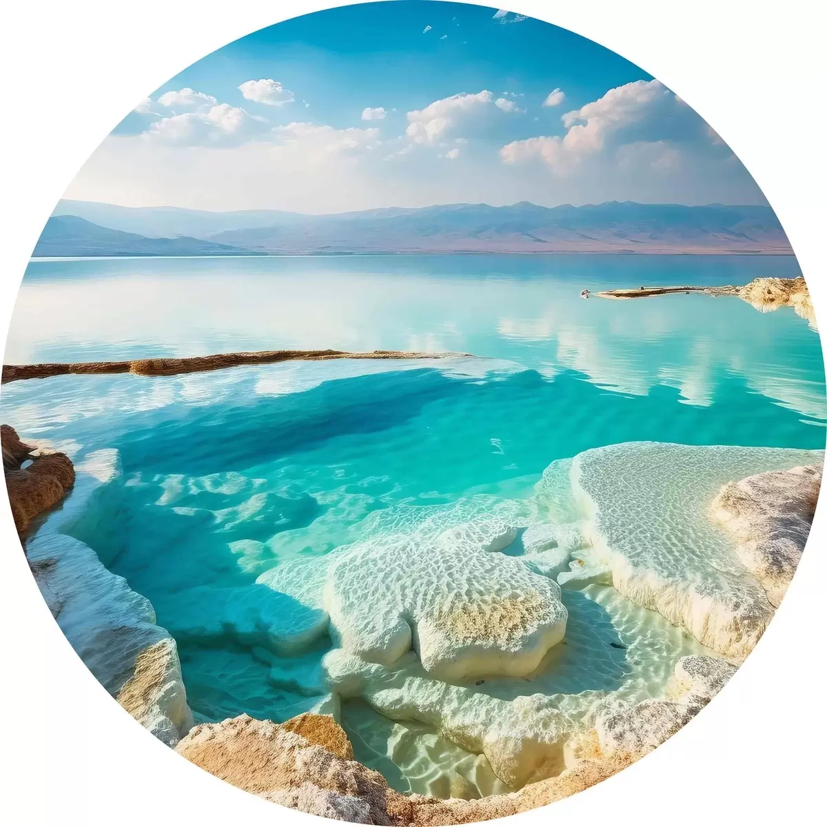Cuadros redondos El Mar Muerto con montañas al fondo r31109