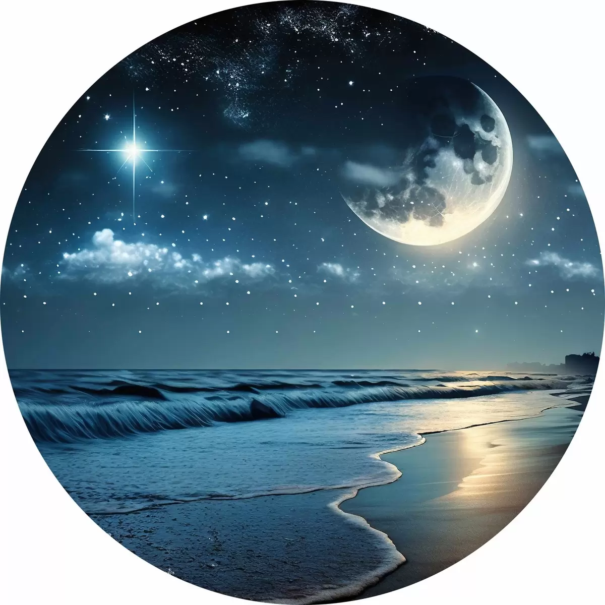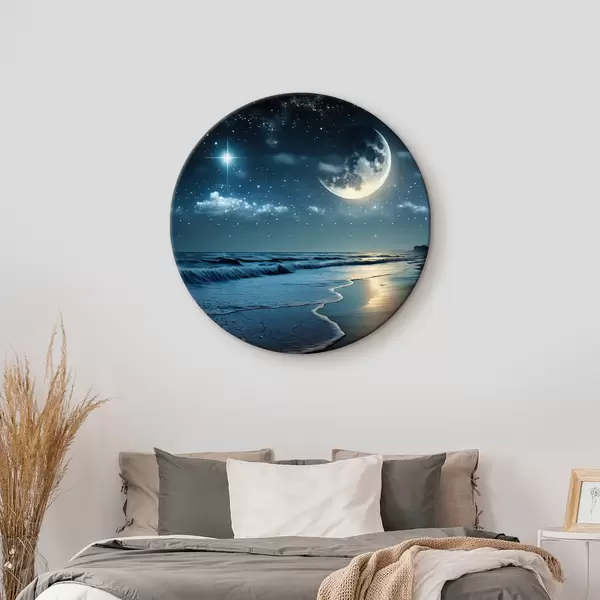 Cuadros redondos Enorme luna sobre el mar nocturno r31111