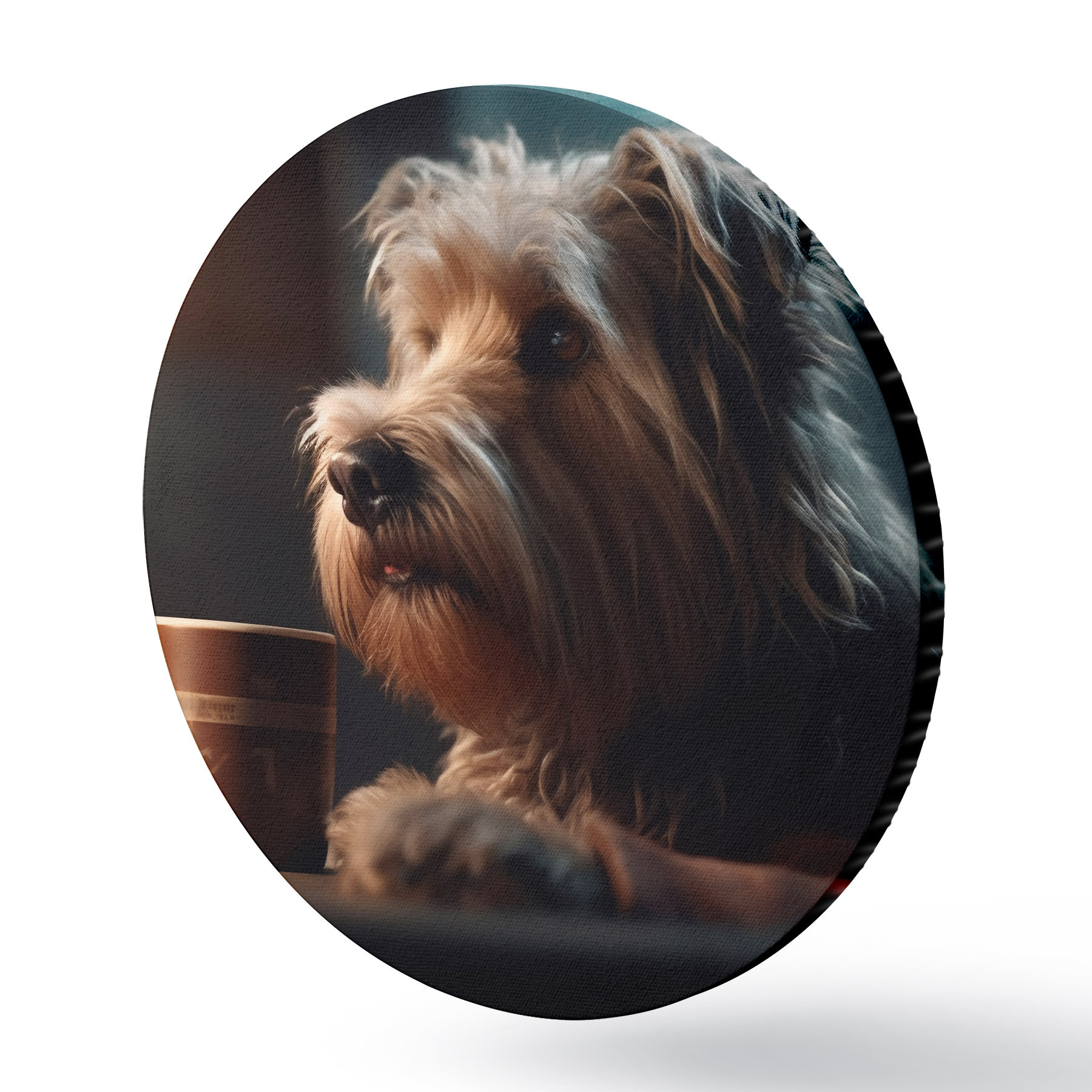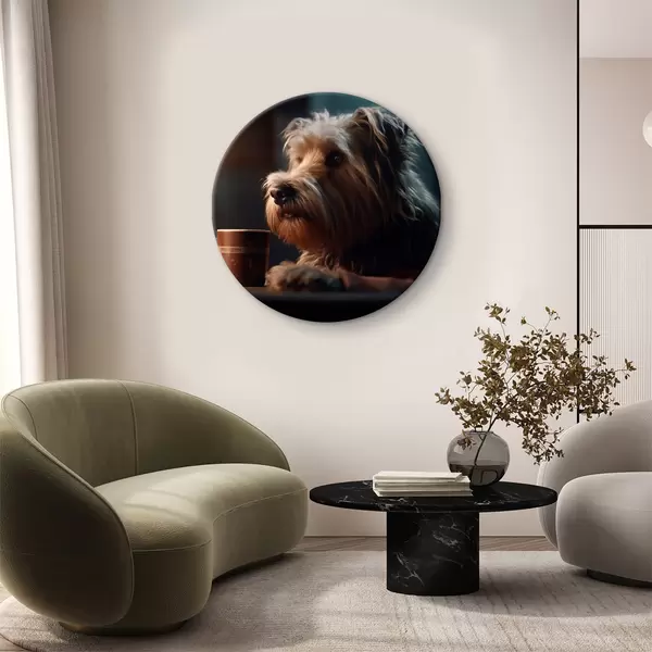 Cuadros redondos Una taza de té y un perro r32153