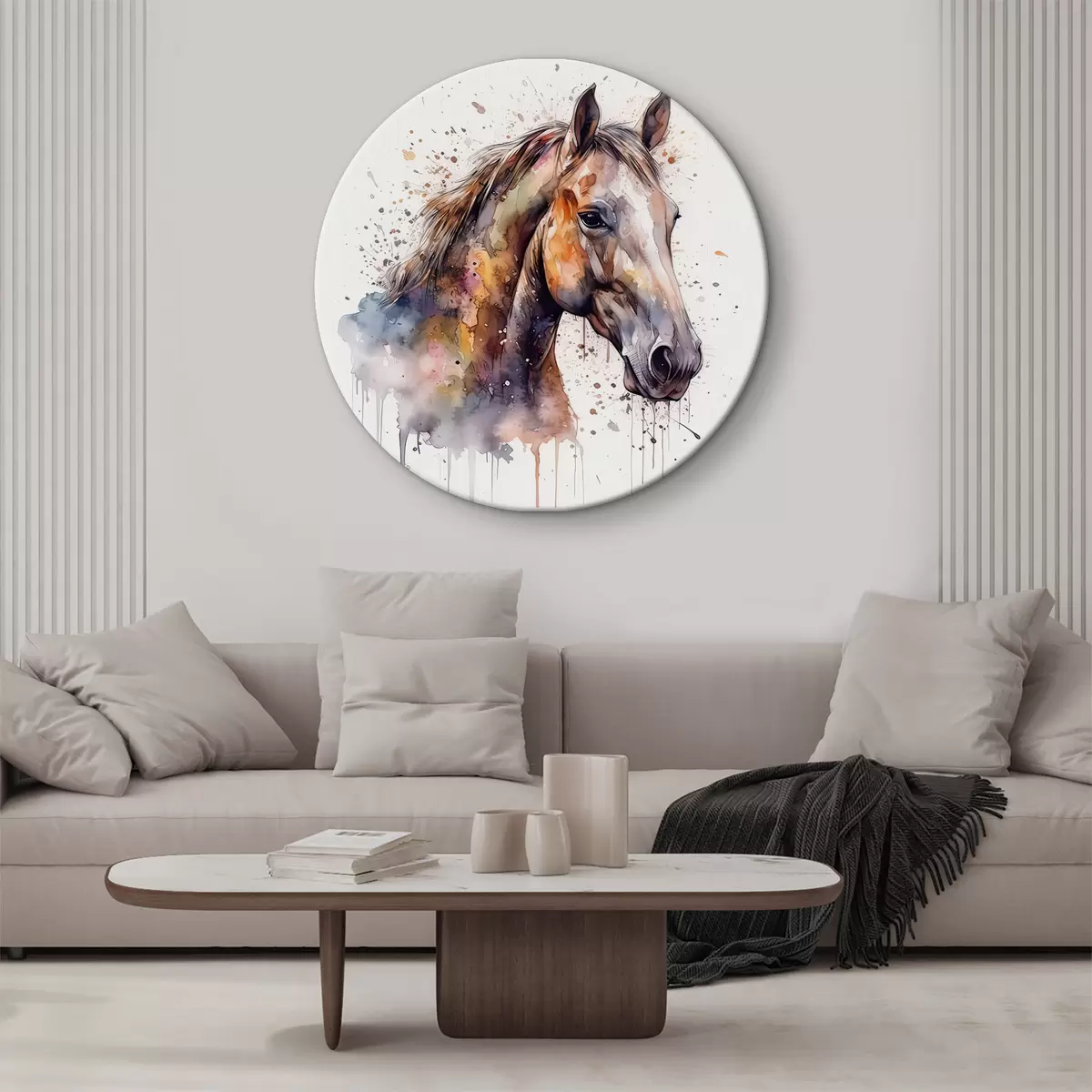 Cuadros redondos Caballo, cabeza y pintura artística r32324