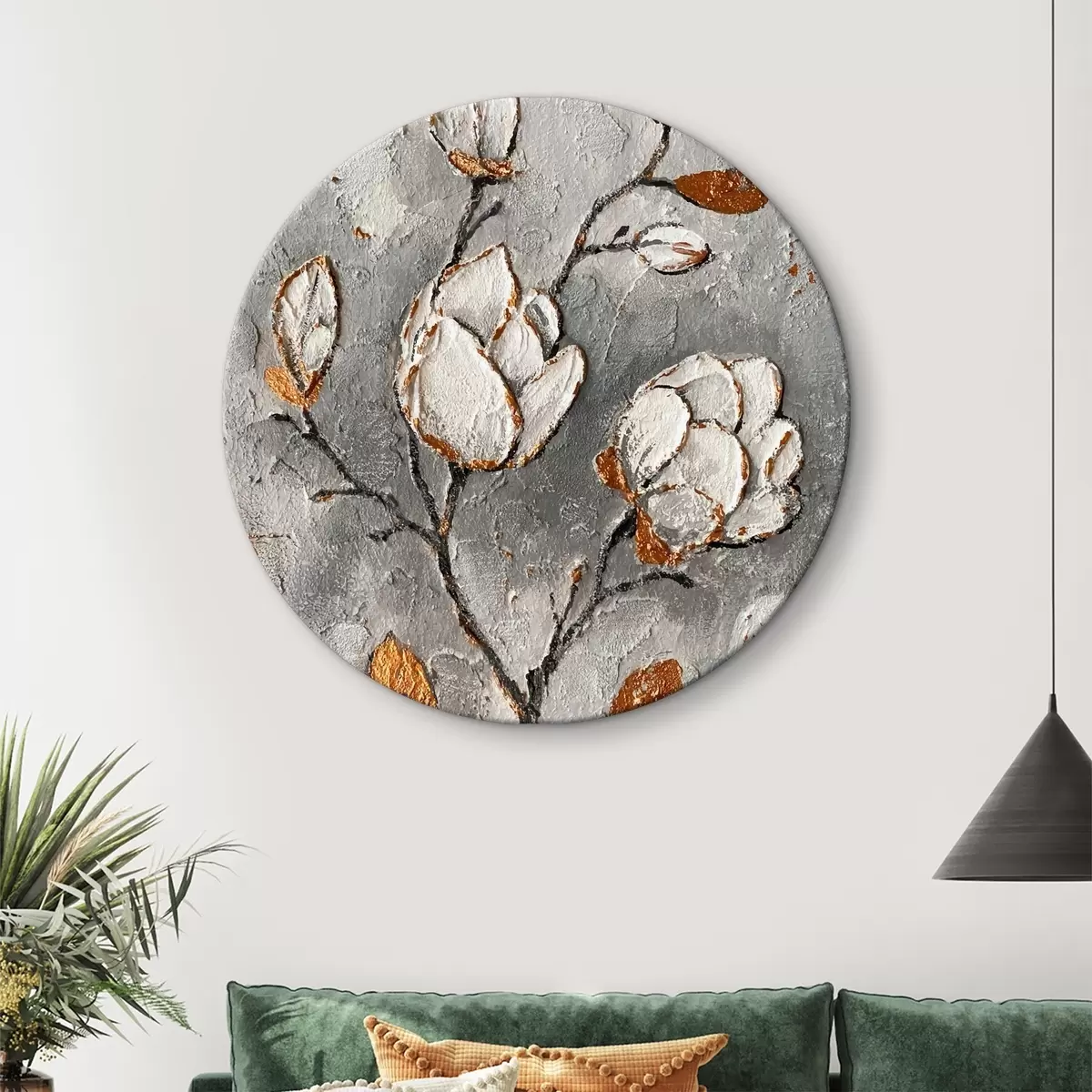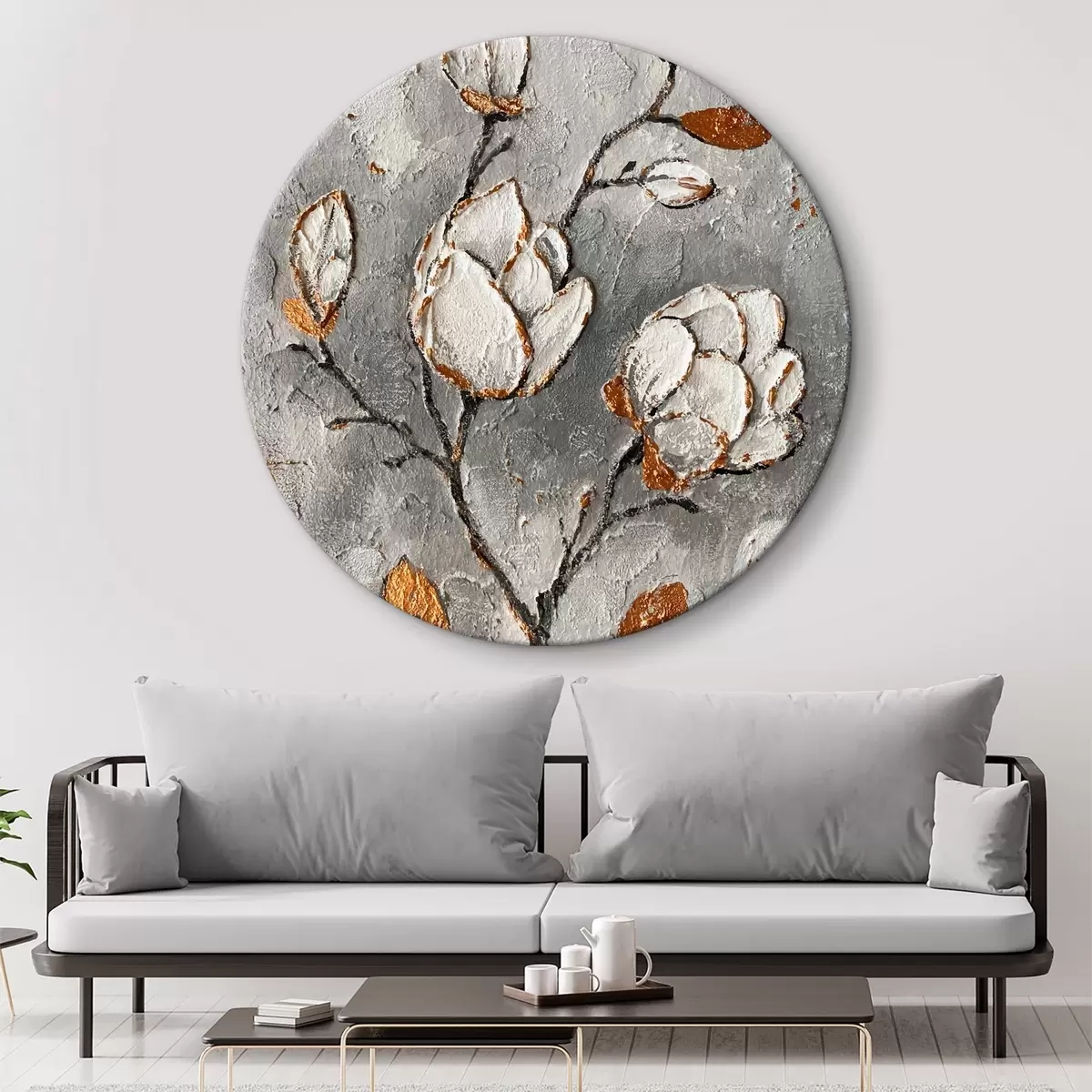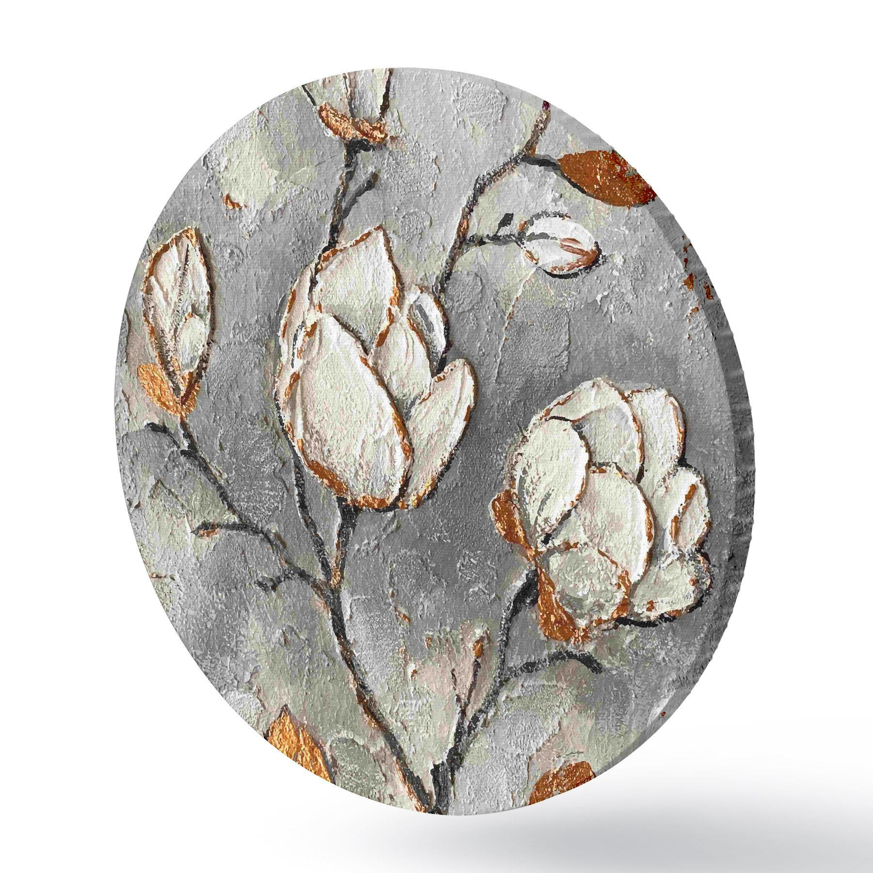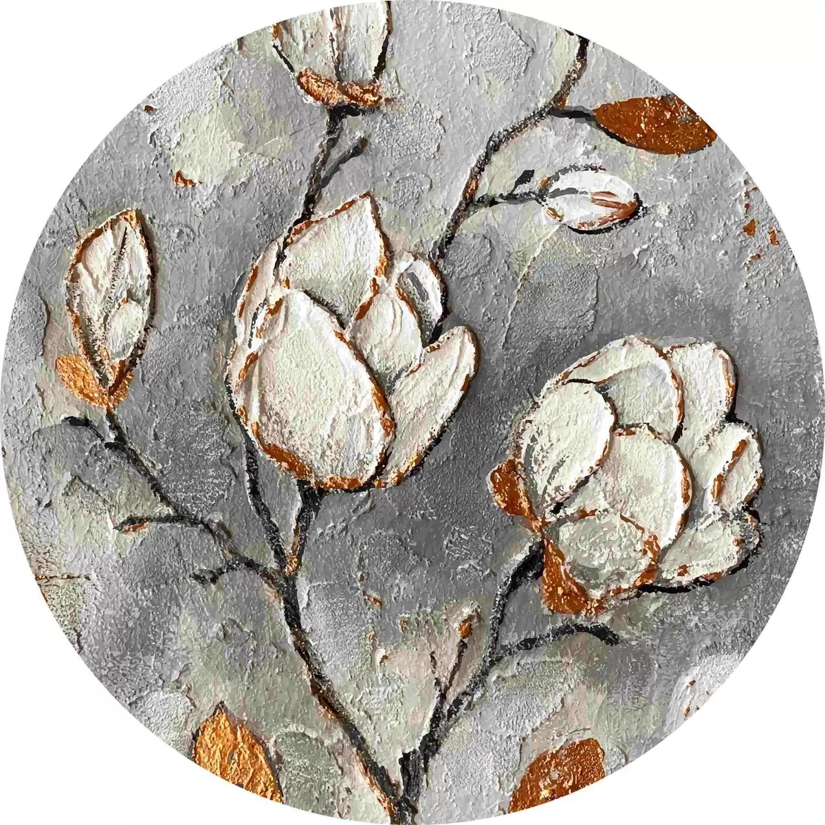 Cuadros redondos Flores de magnolia, pintura a pincel con detalles dorados r32513