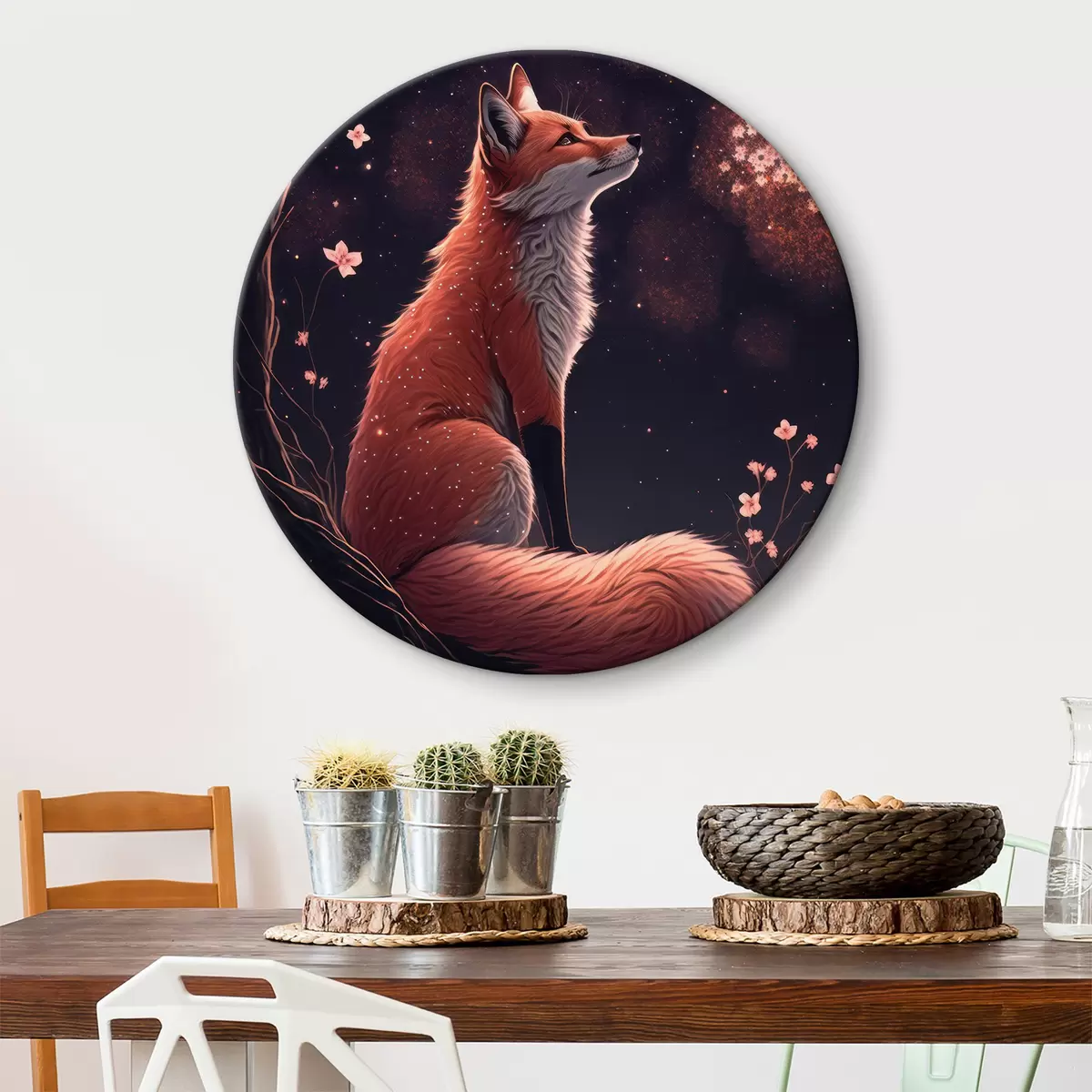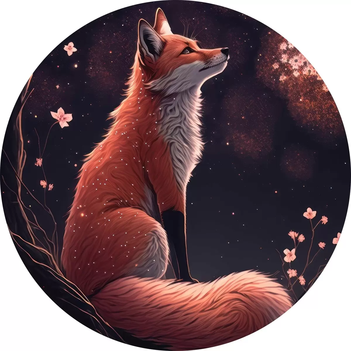 Cuadros redondos Zorro con sakura r32547