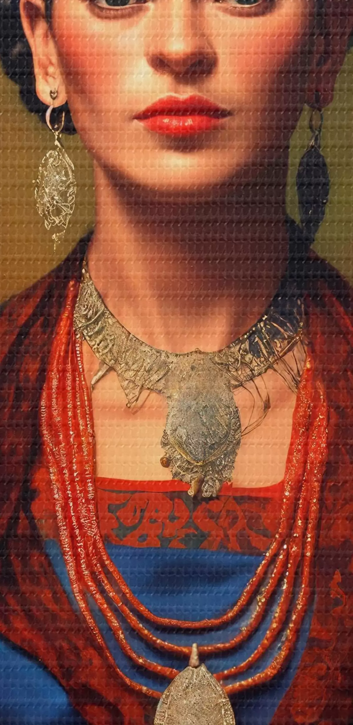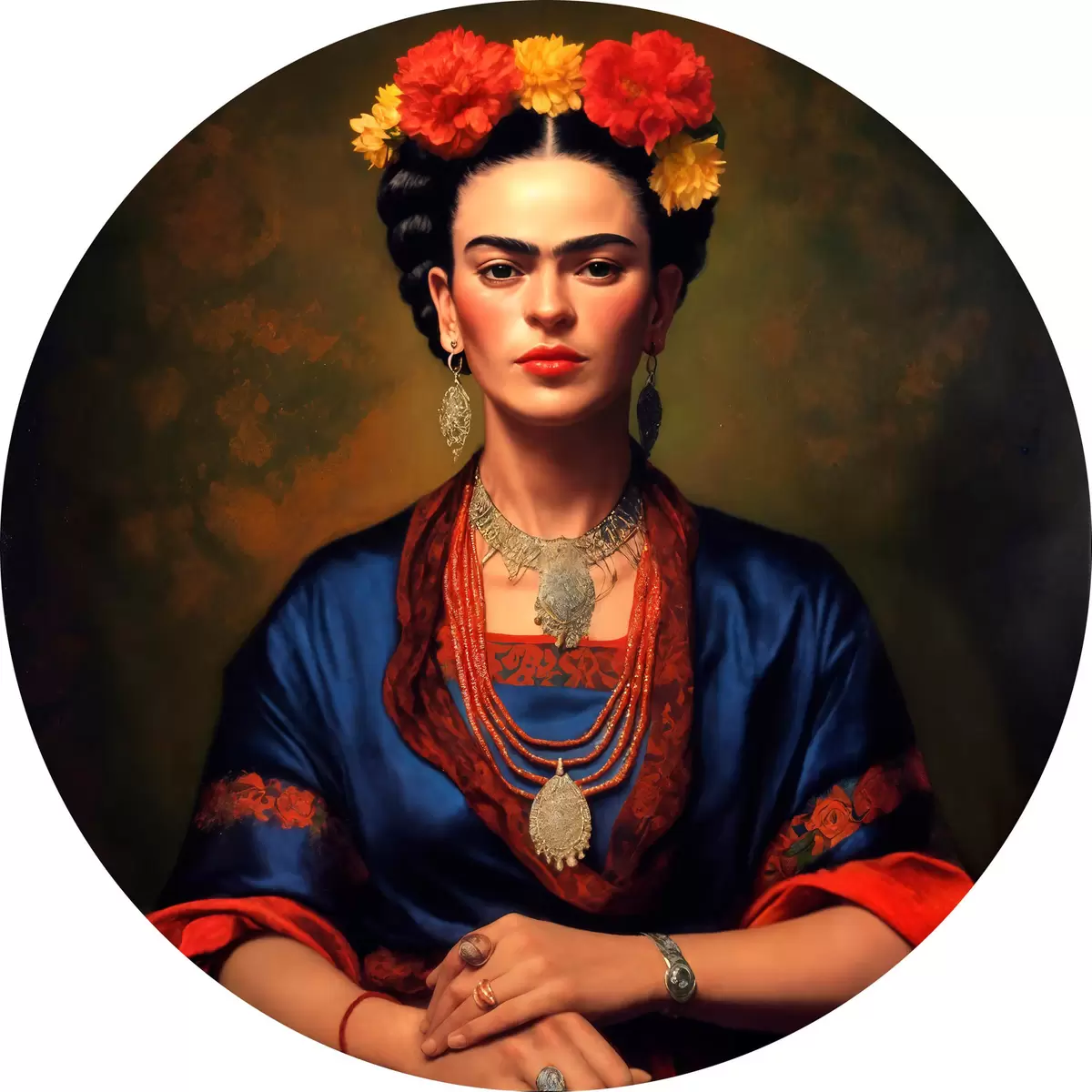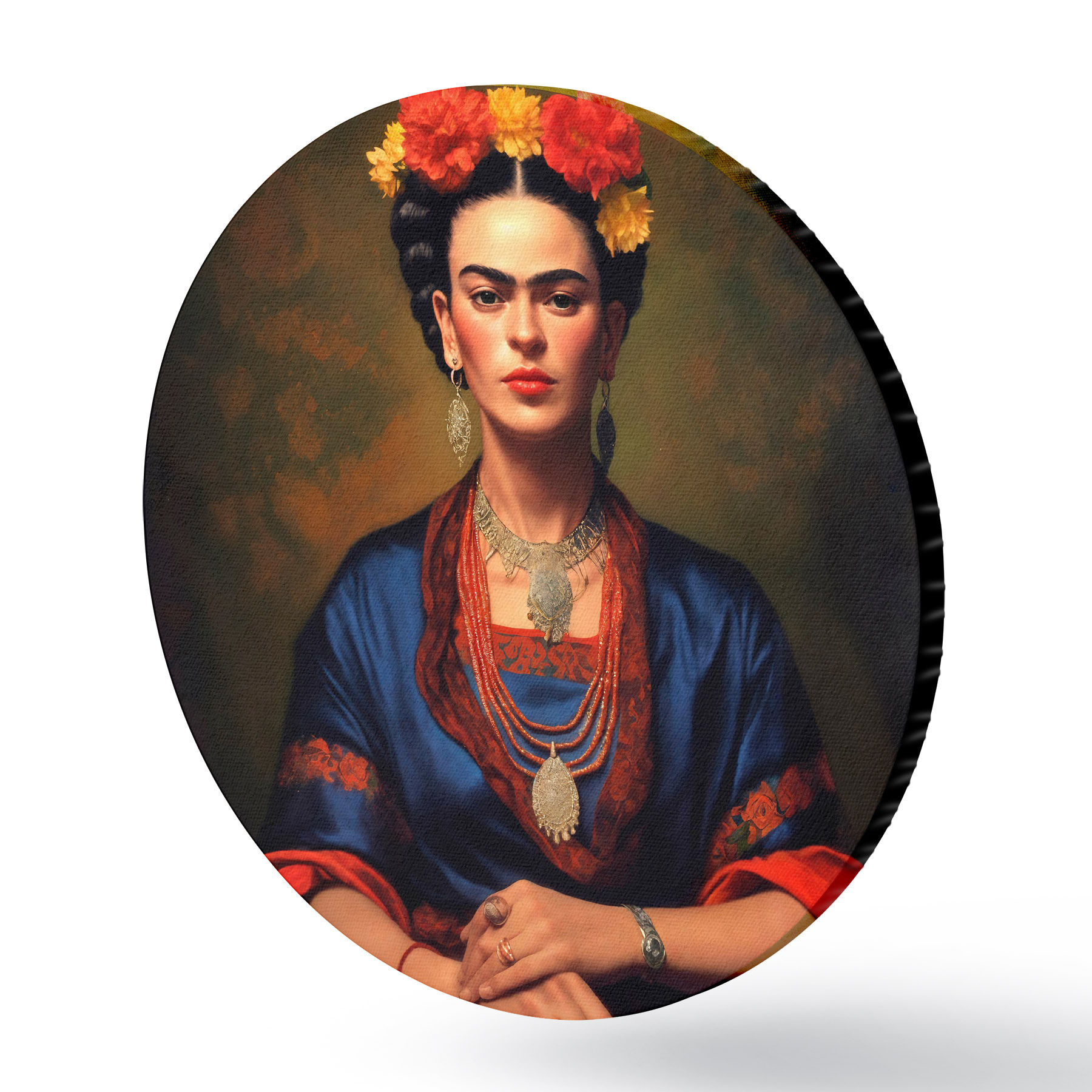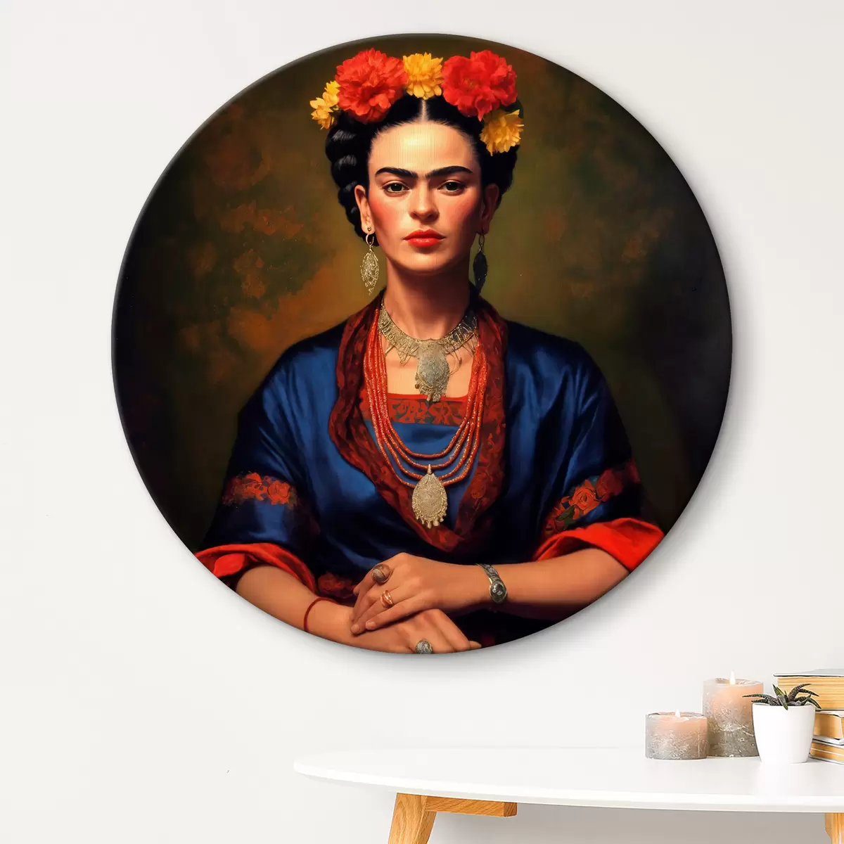 Cuadros redondos Frida Kahlo con un vestido azul r32866