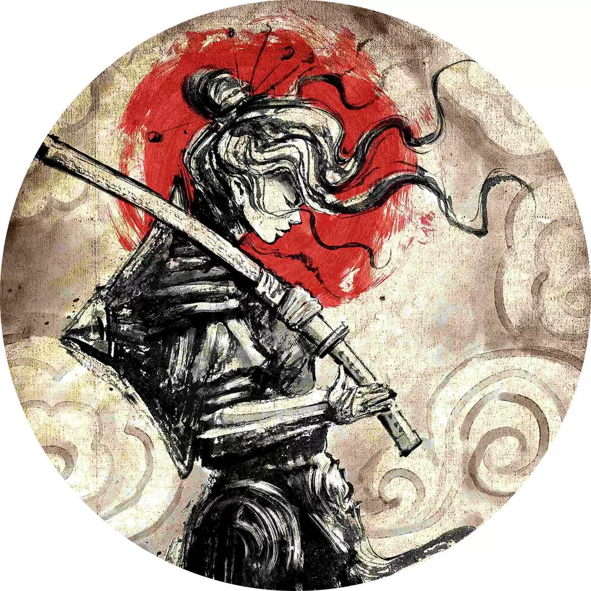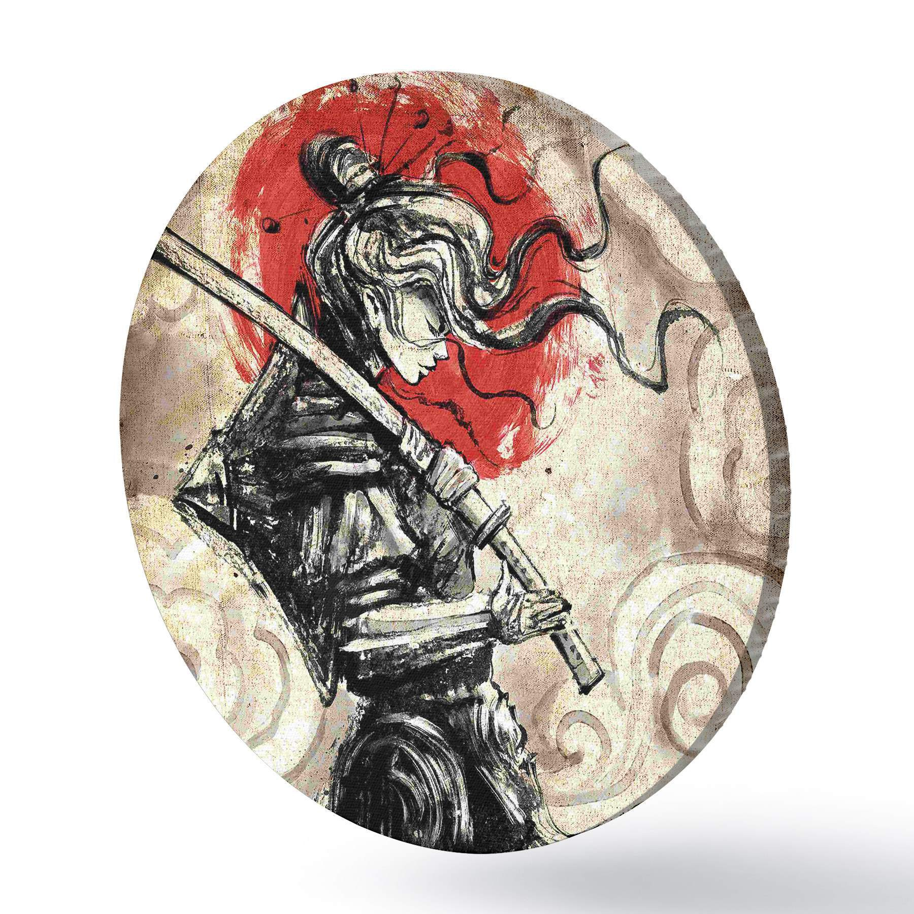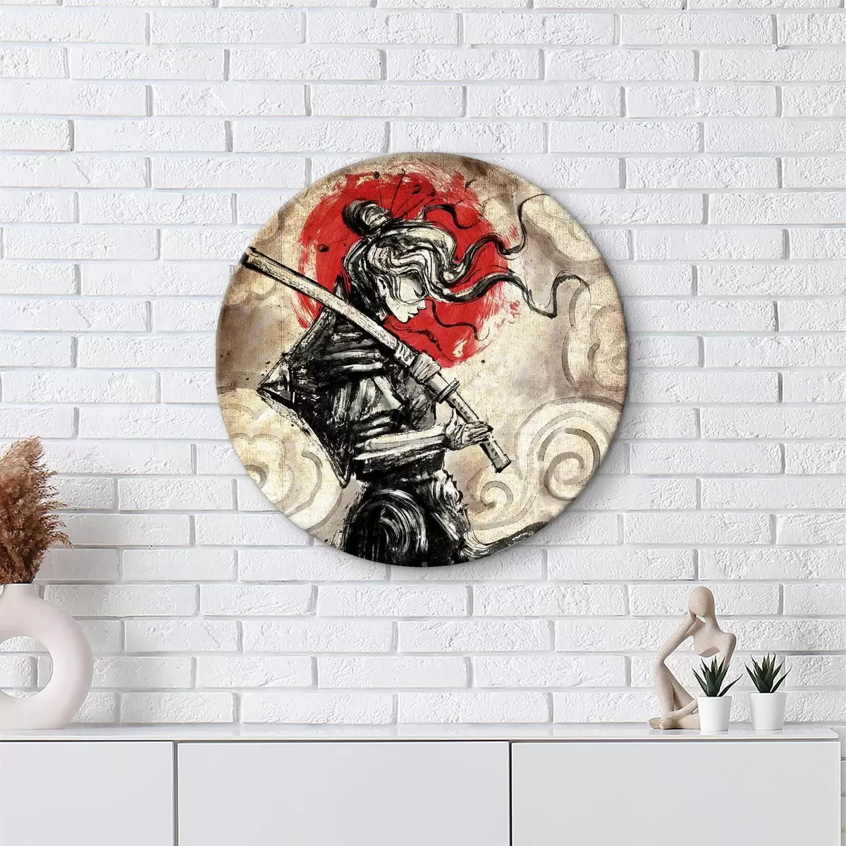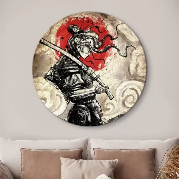 Cuadros redondos Hermosa chica samurai con una katana al hombro r33060