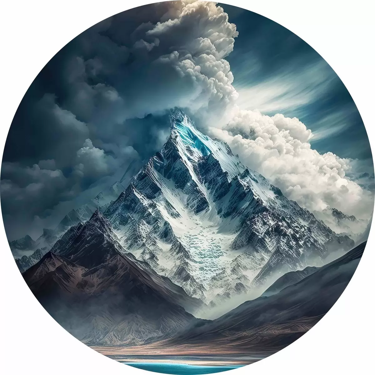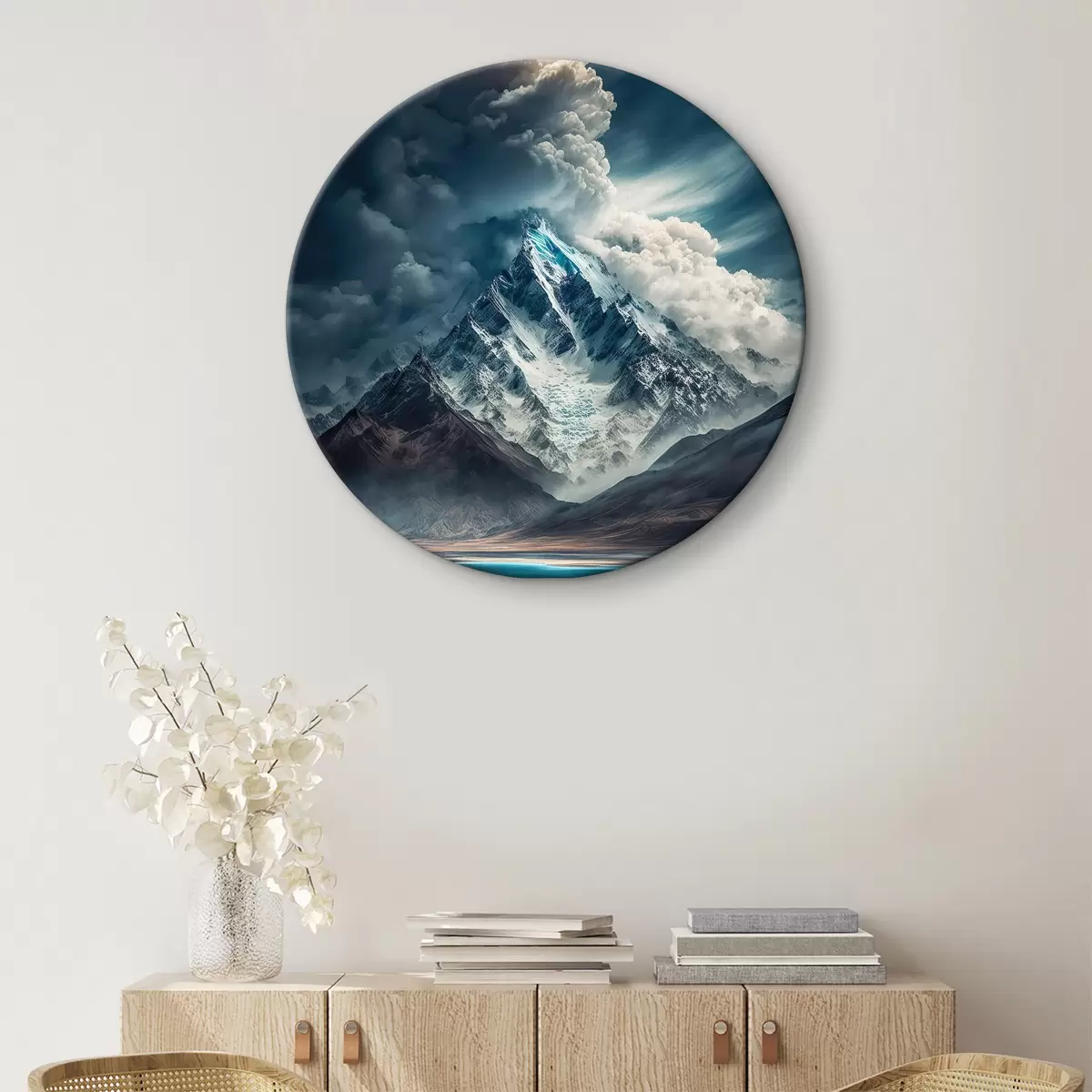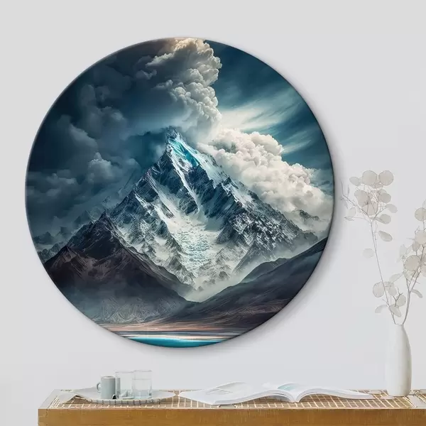 Cuadros redondos Montañas, lago y enormes nubes r33082