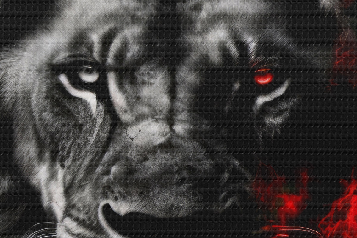 Cuadros redondos Felidae, carnívoro y león masái r33095