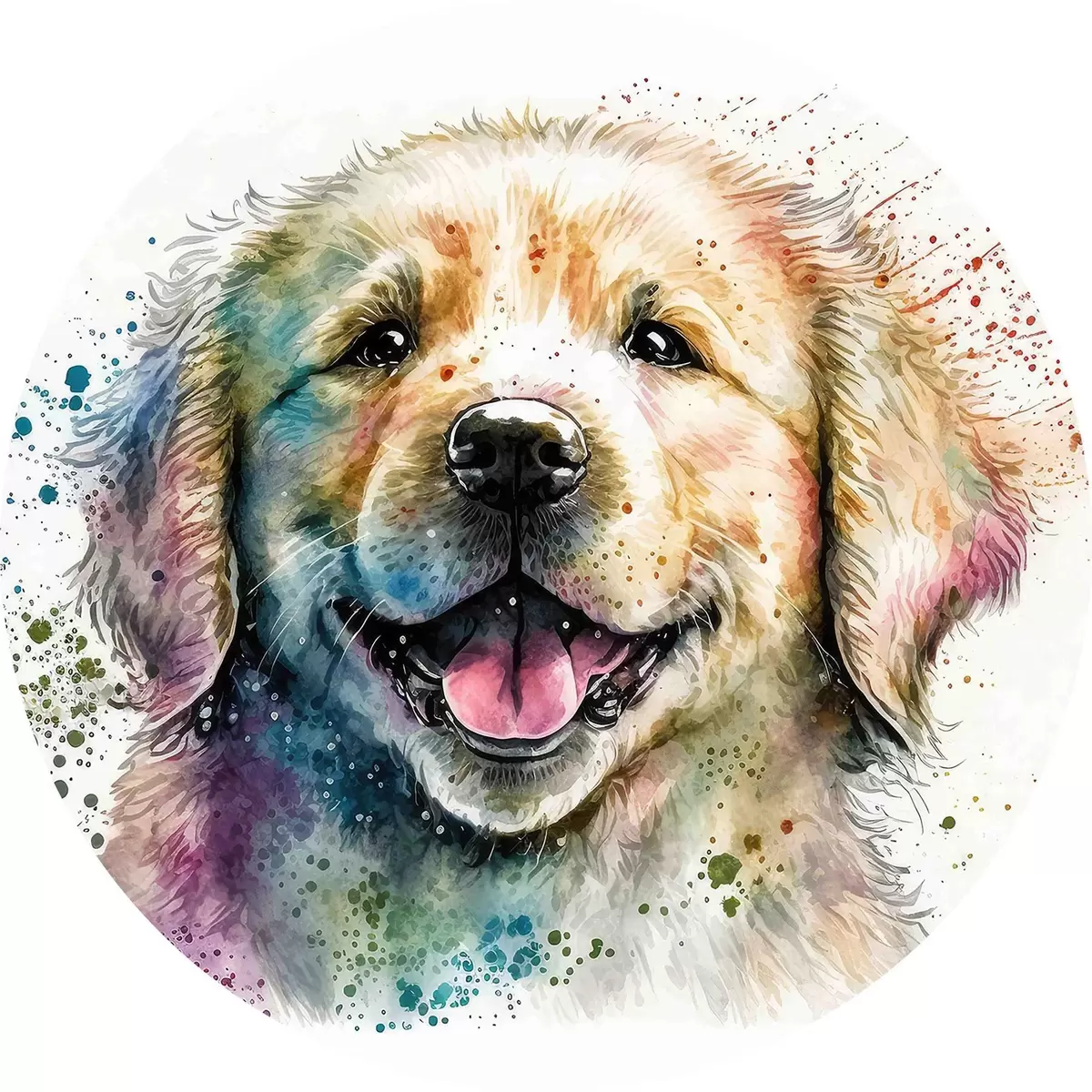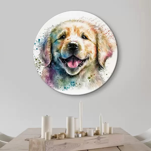 Cuadros redondos Cachorro feliz en estilo acuarela r33539