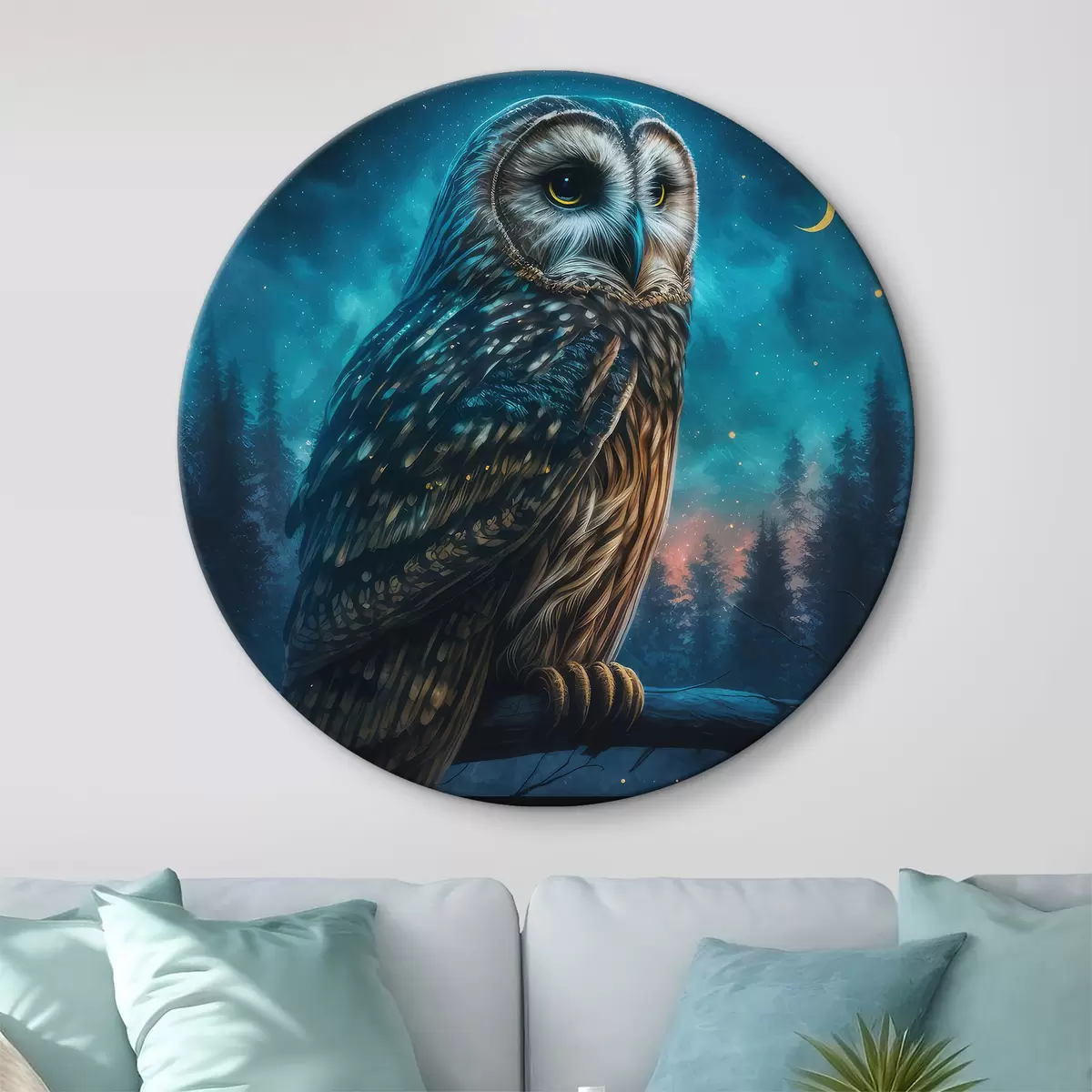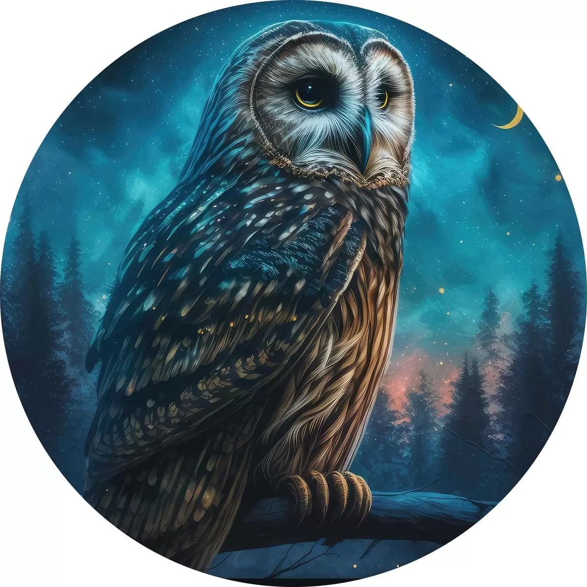 Cuadros redondos Búho en el bosque nocturno r33544