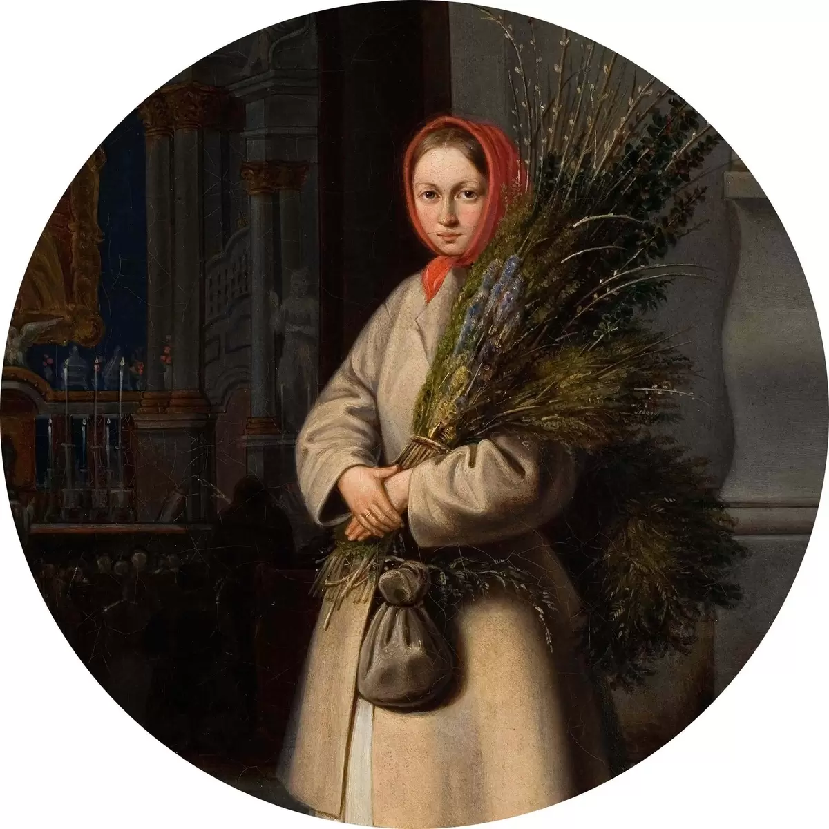 Cuadros redondos Lituano con hojas de Domingo de Ramos, artista Kanutas Ruseckas r33792