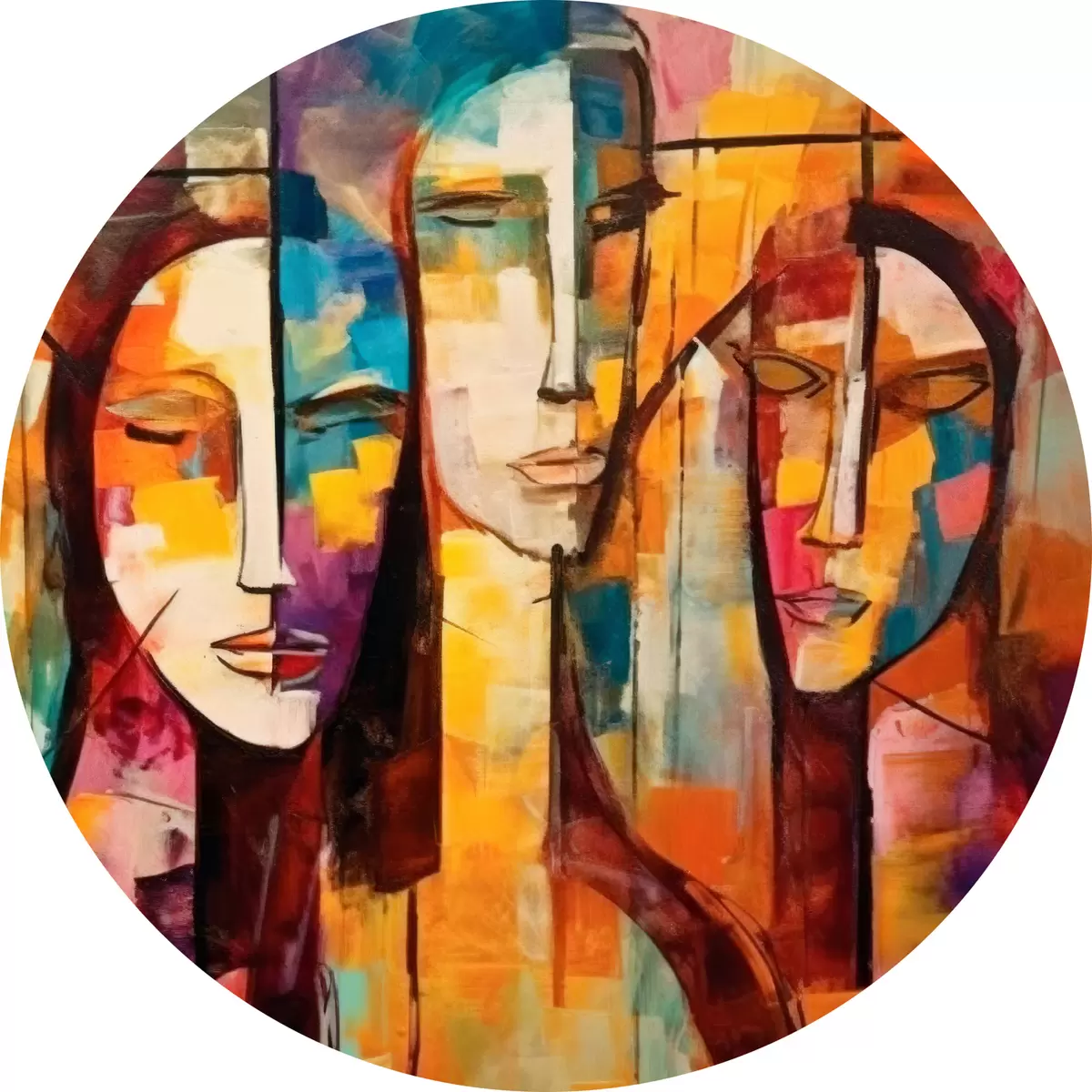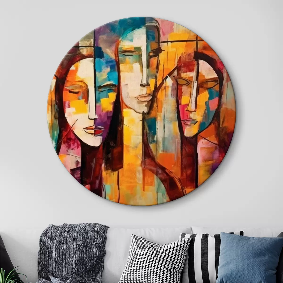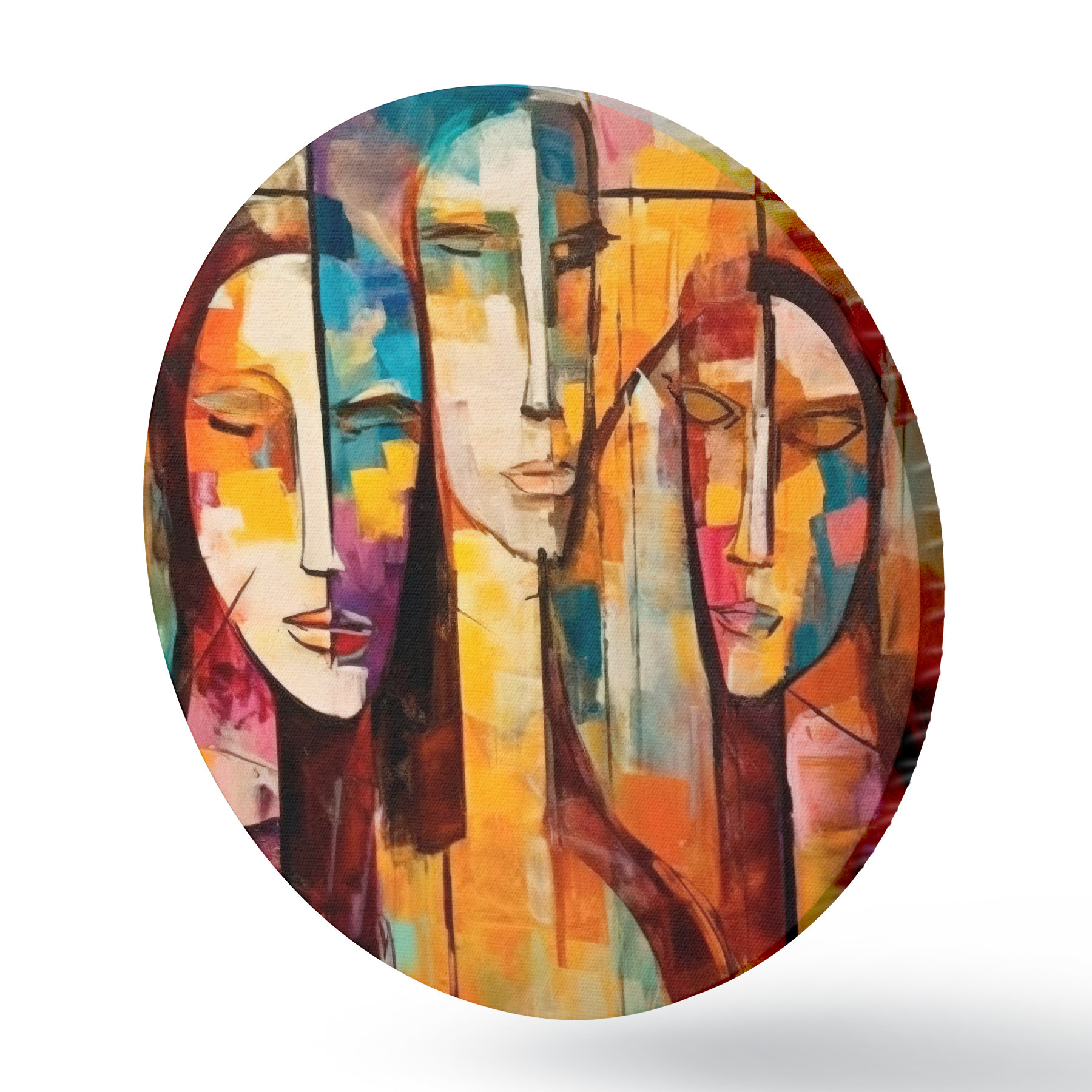 Cuadros redondos 3 caras surrealistas en tonos naranja brillante r33845