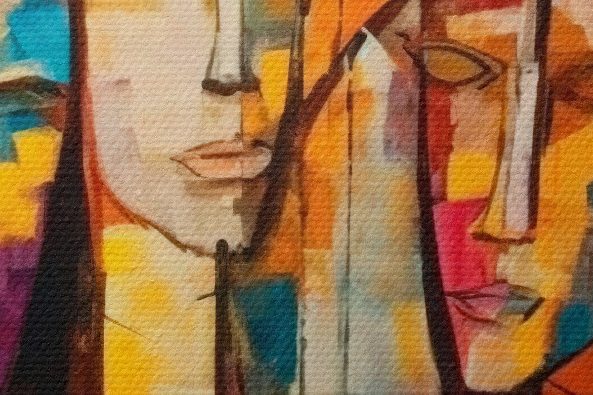 Foto 3 caras surrealistas en tonos naranja brillante Nr r33845