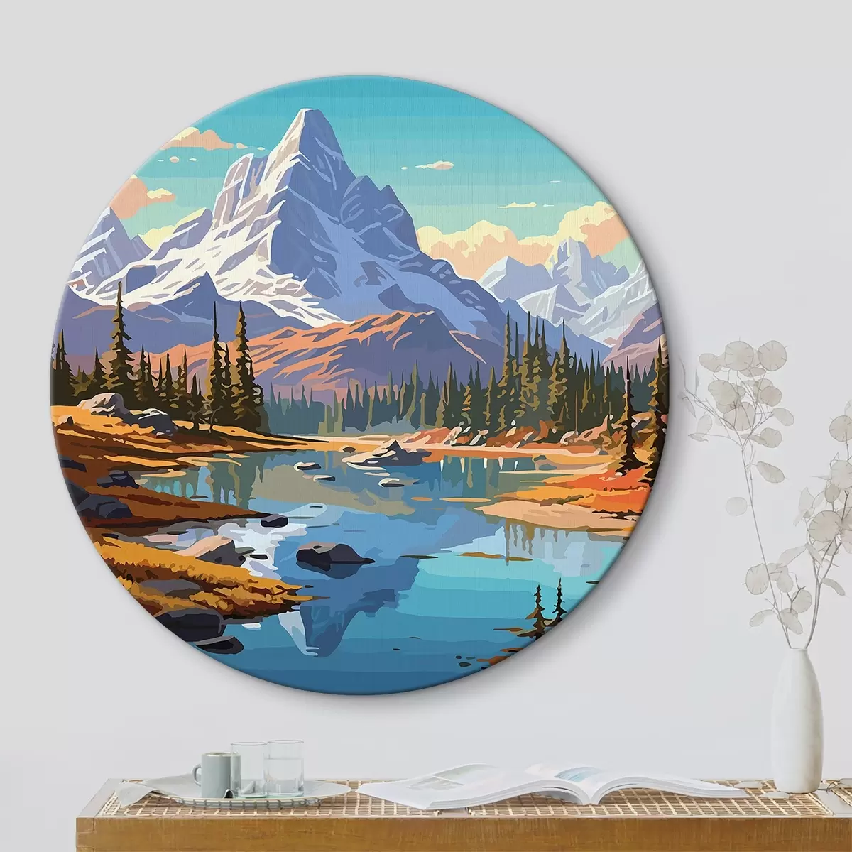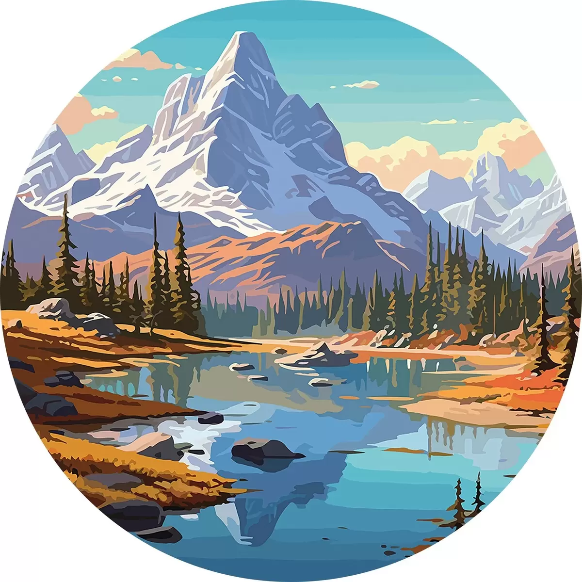 Cuadros redondos lago en las montañas r33951