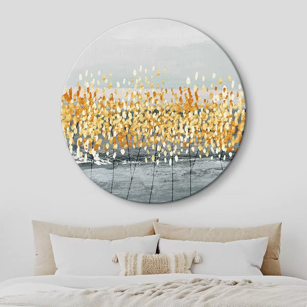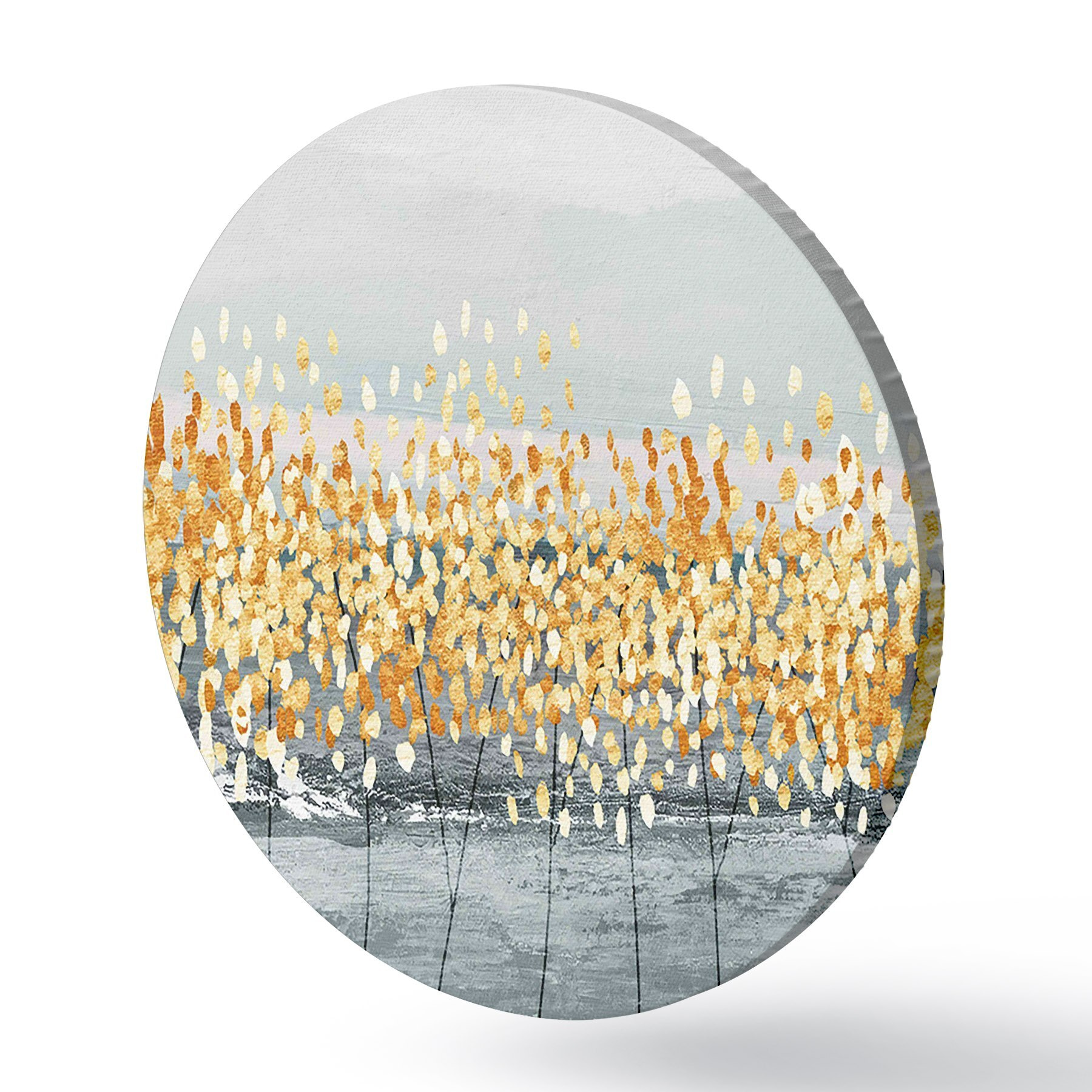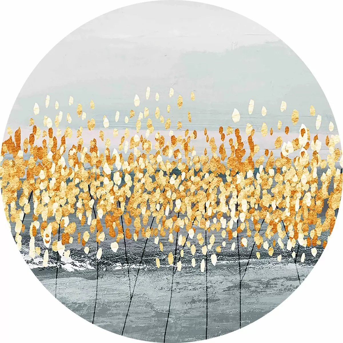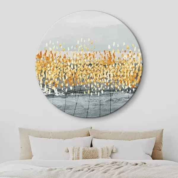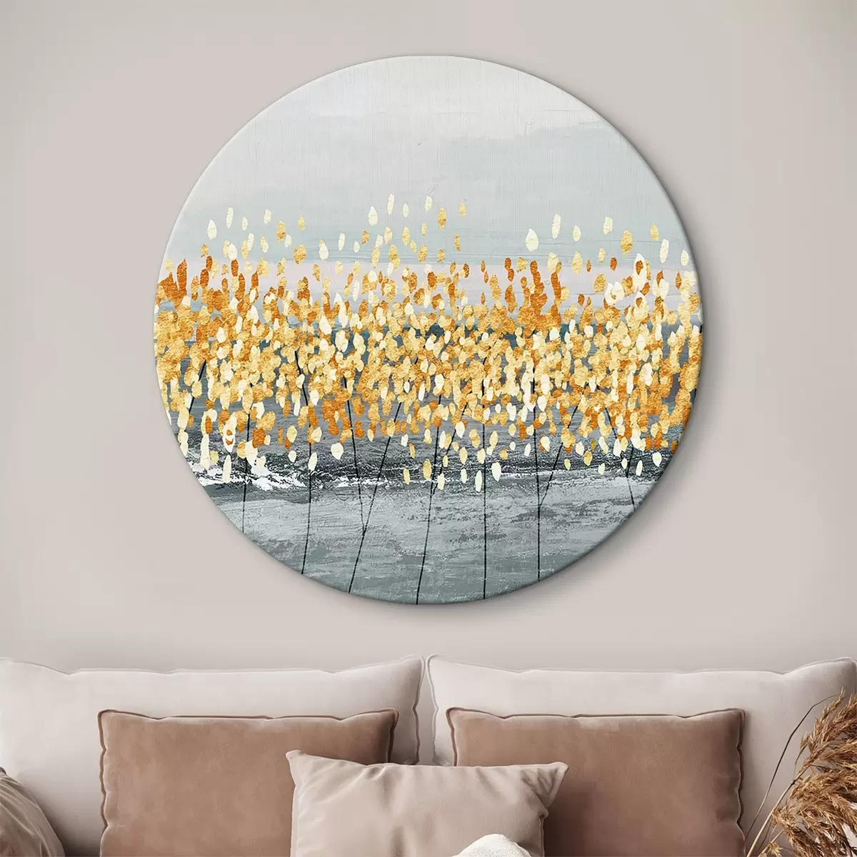 Cuadros redondos ramitas doradas sobre gris r34141