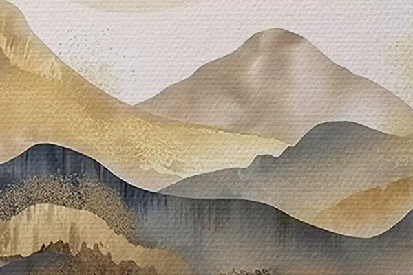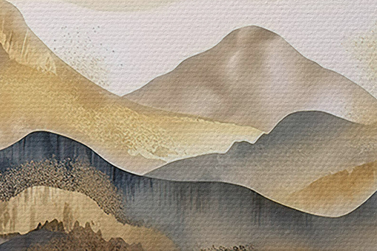 Foto Fondo abstracto de montañas en beige y gris con elementos dorados sobre fondo blanco Nr r34462