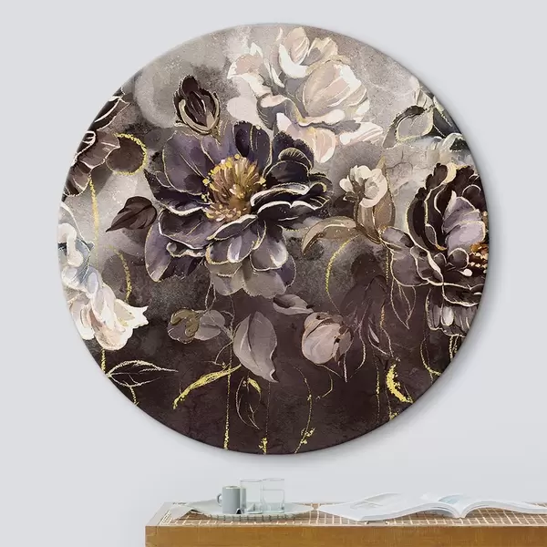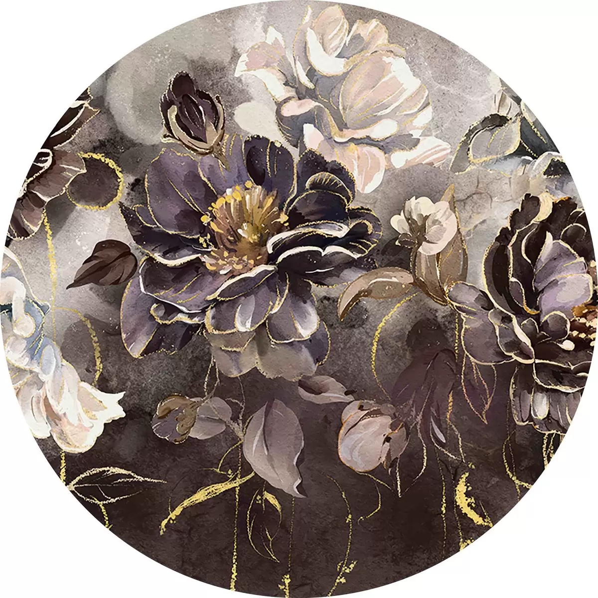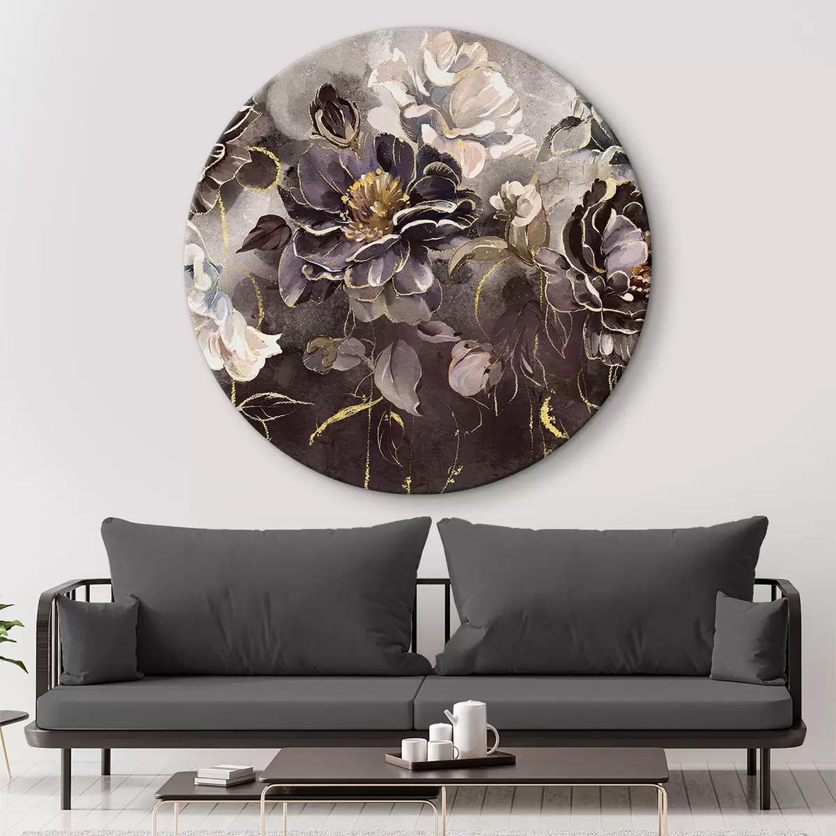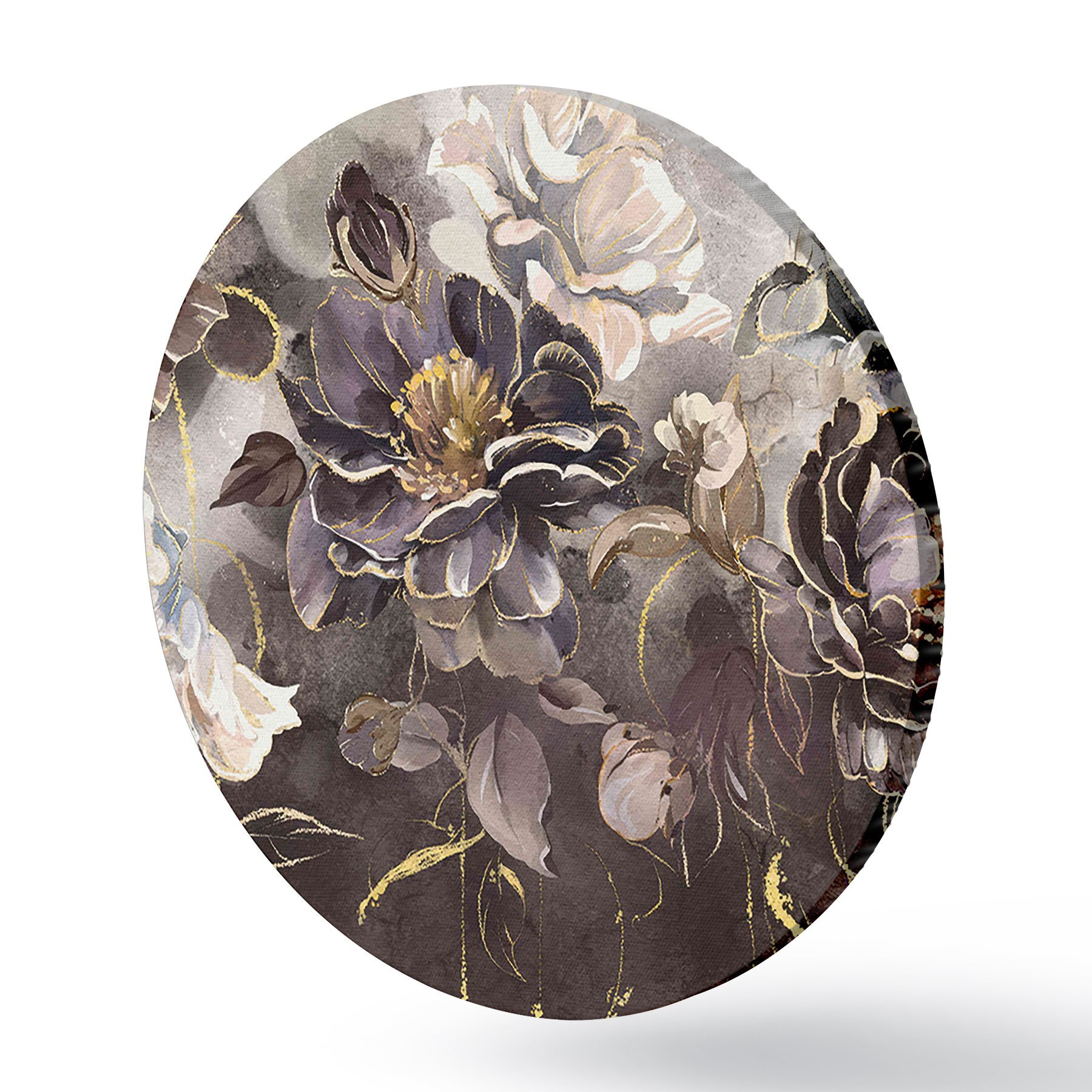 Cuadros redondos Pintura al óleo con flor de rosa, hojas r34594