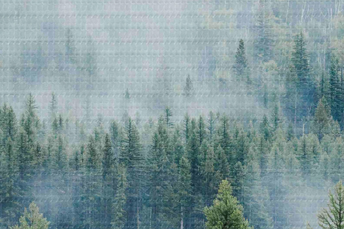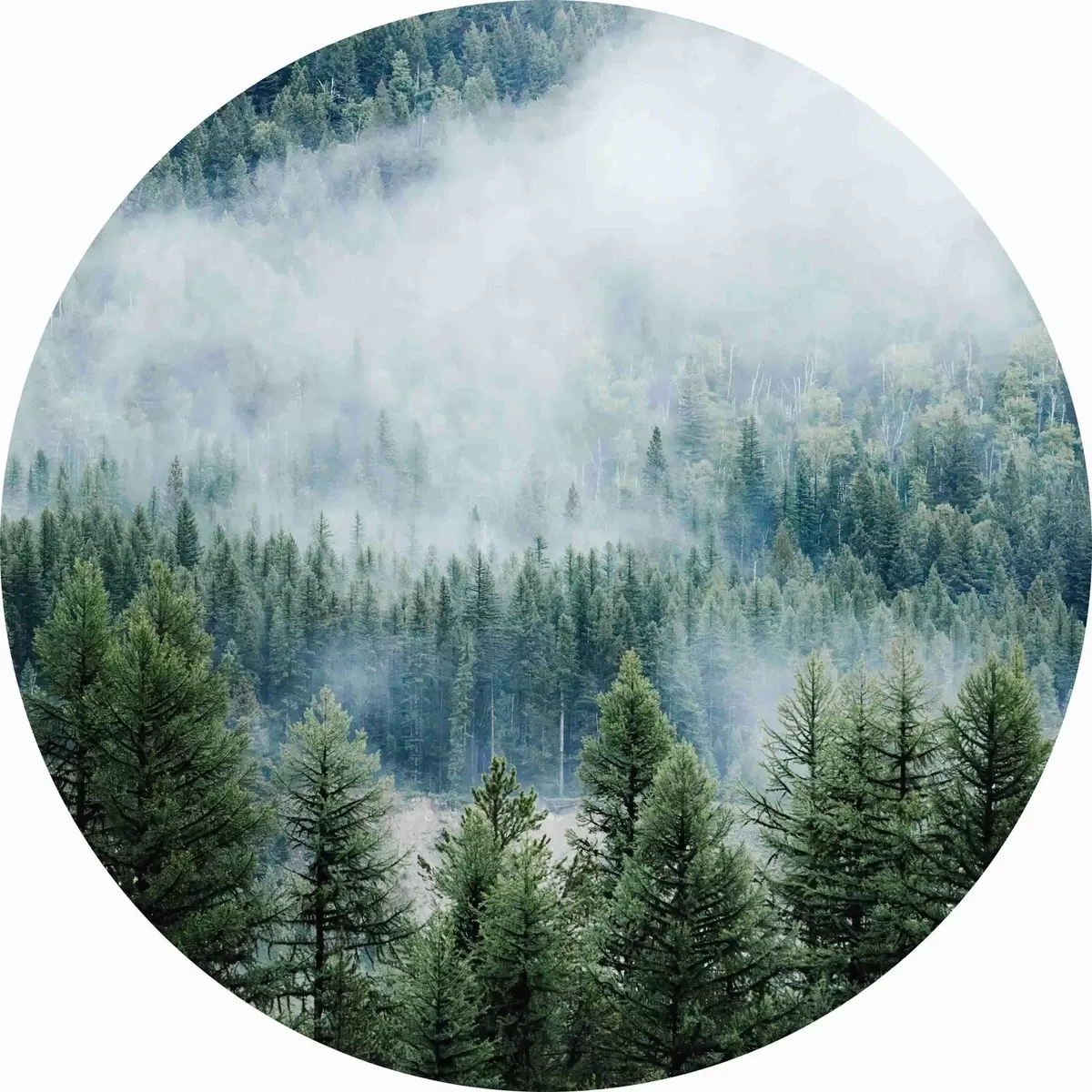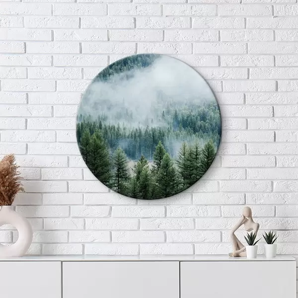 Cuadros redondos Bosque de coníferas en la niebla r34825