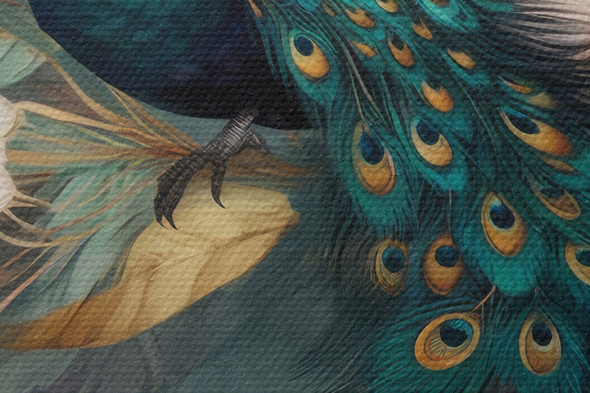 Foto Un hermoso pavo real en una rama en flor Nr r34866