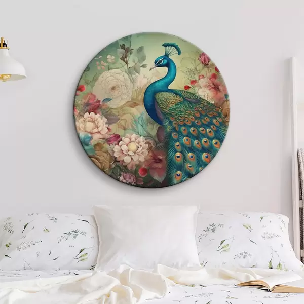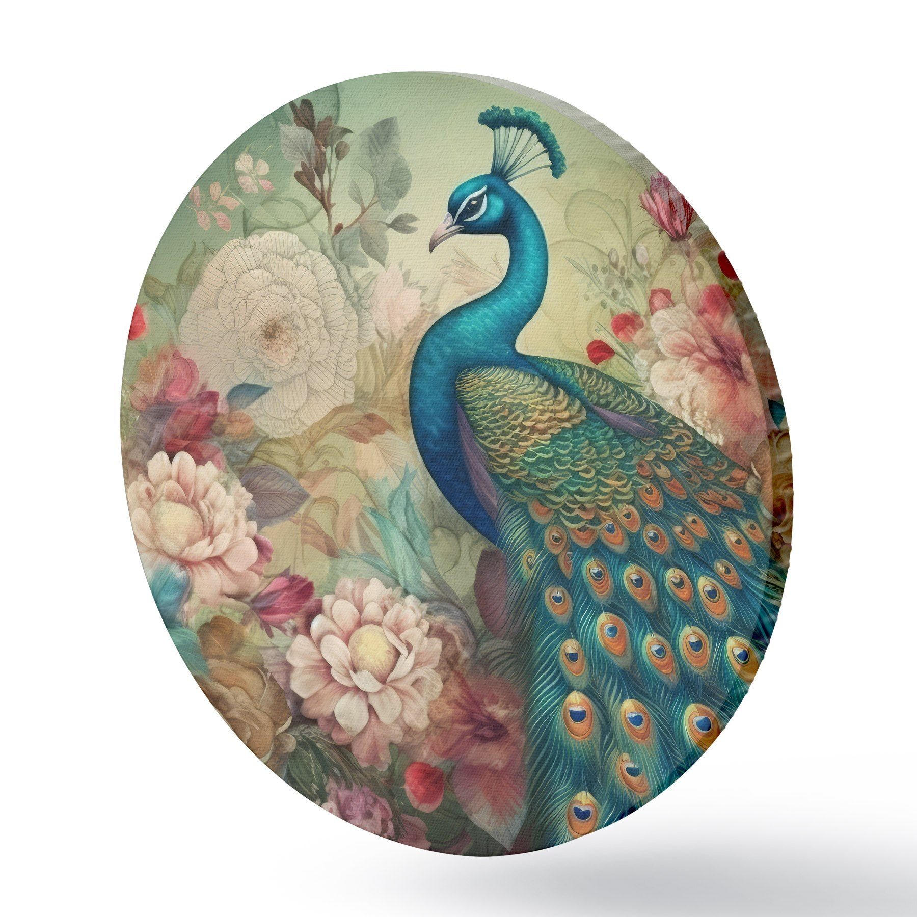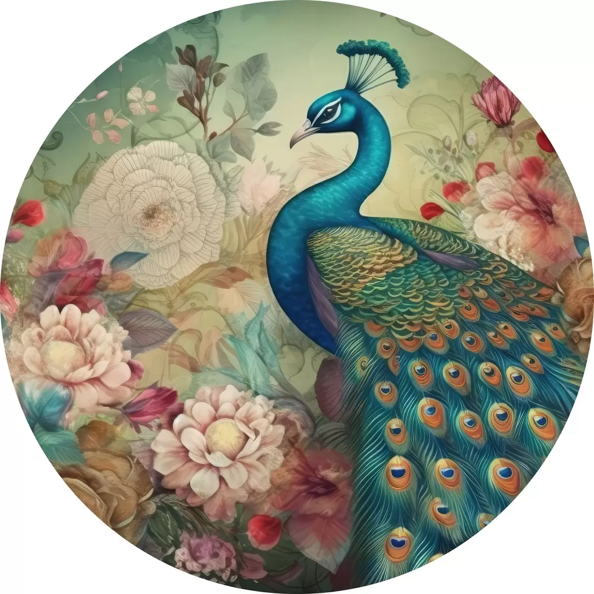 Cuadros redondos Pavo real con flores en estilo vintage r34869