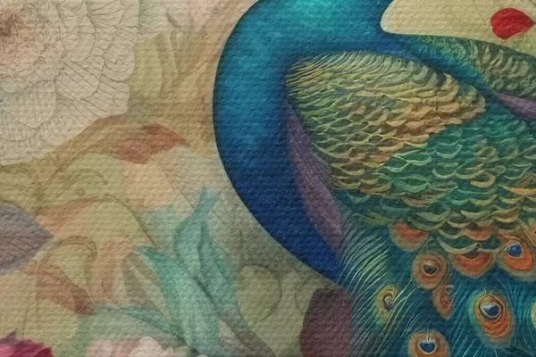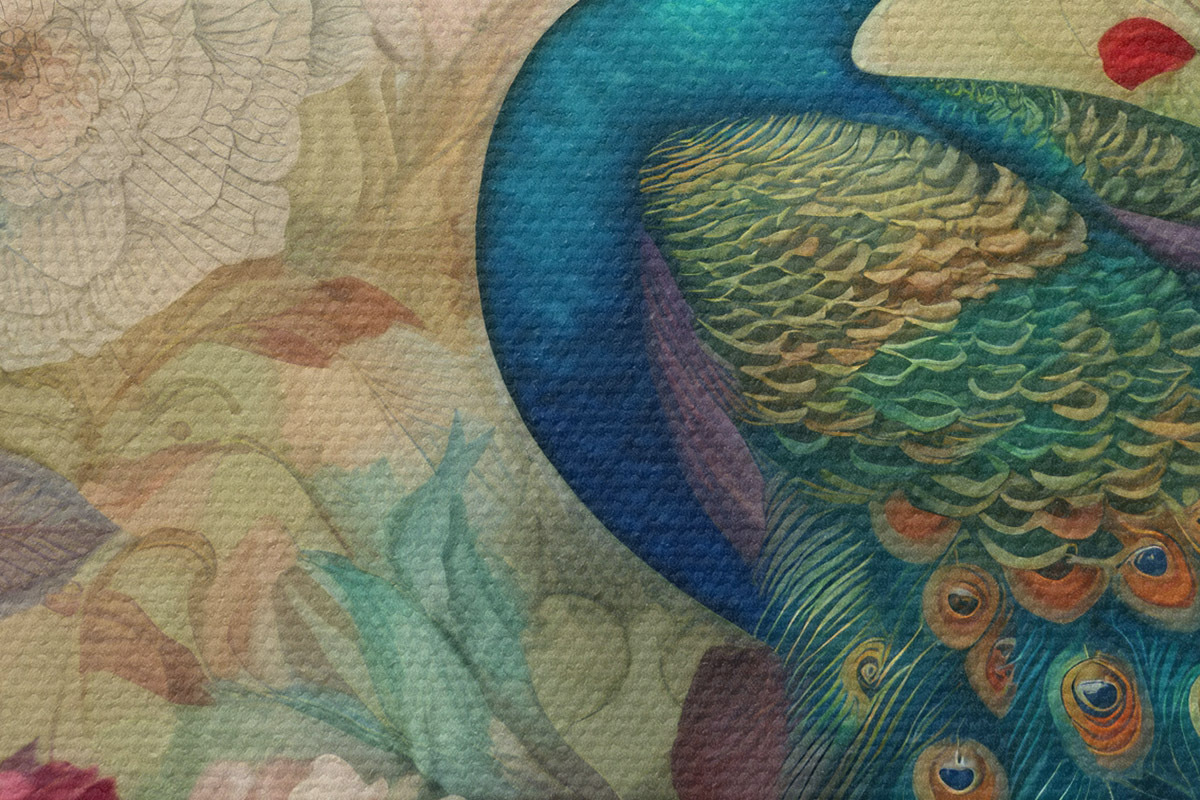 Foto Pavo real con flores en estilo vintage Nr r34869