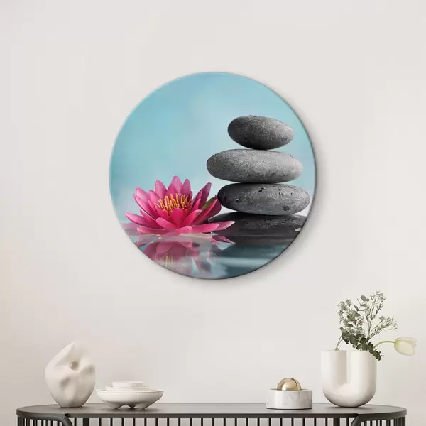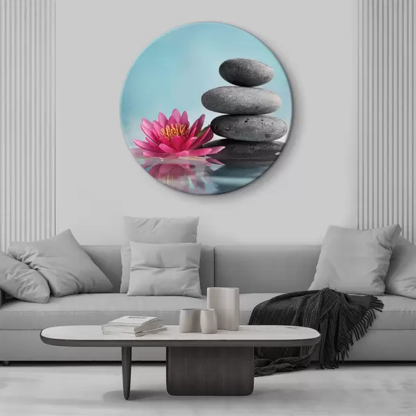 Cuadros redondos Loto rosa y piedras r34932