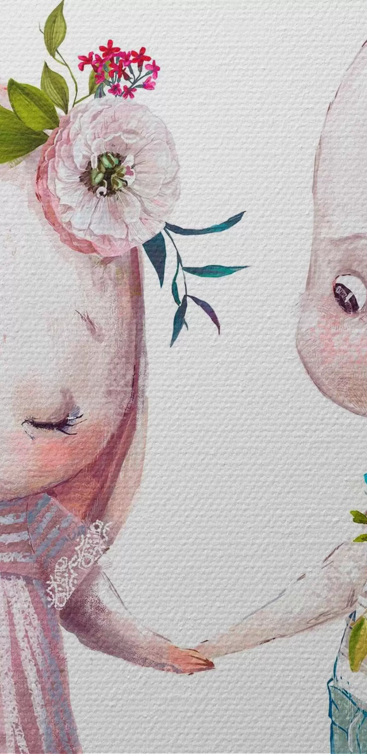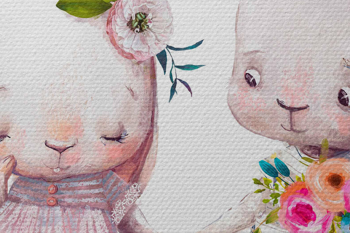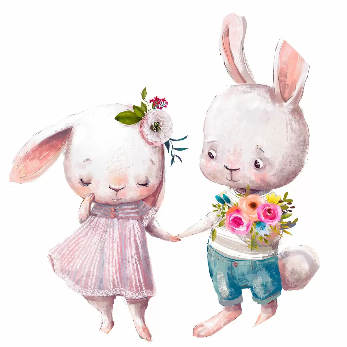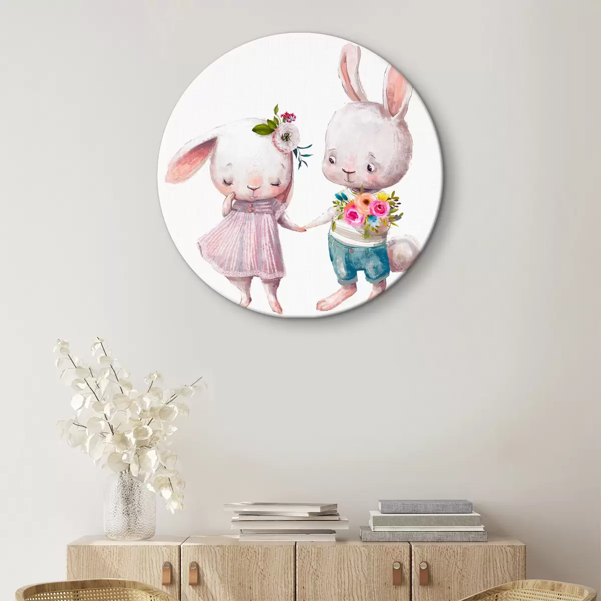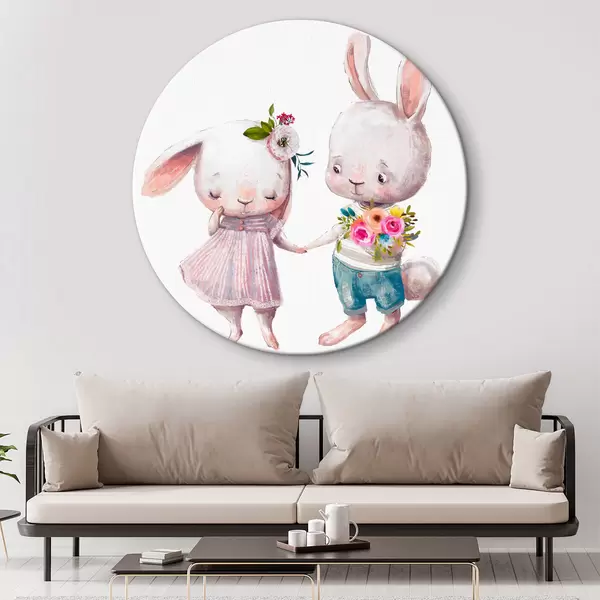 Cuadros redondos Un par de conejitos Date y flores r35055