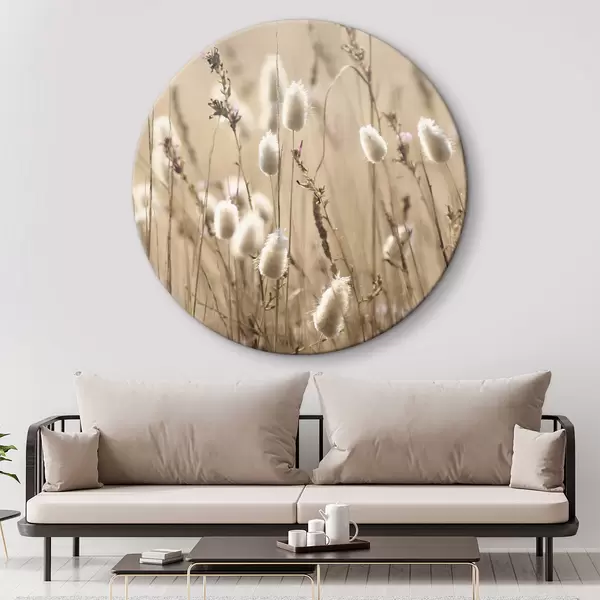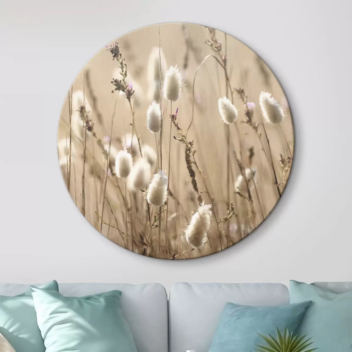 Cuadros redondos Hierbas esponjosas en un prado iluminado por el sol r35256