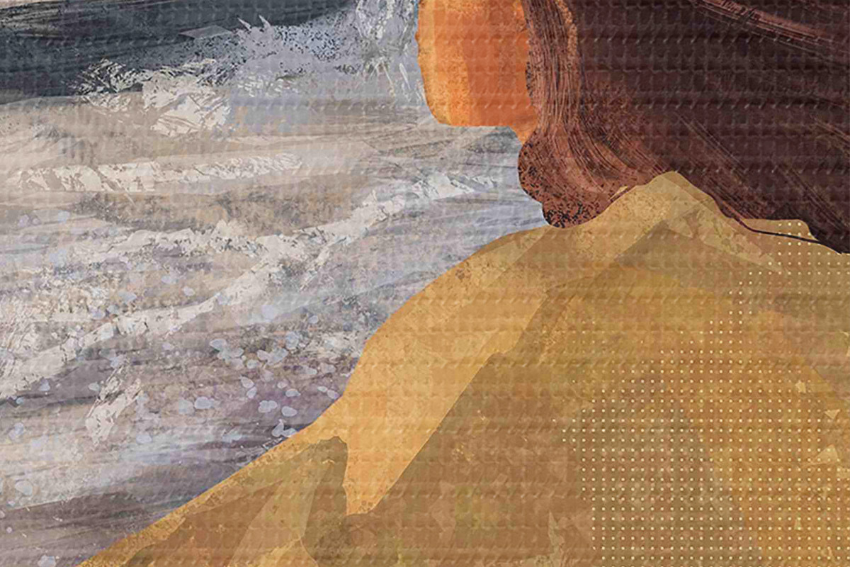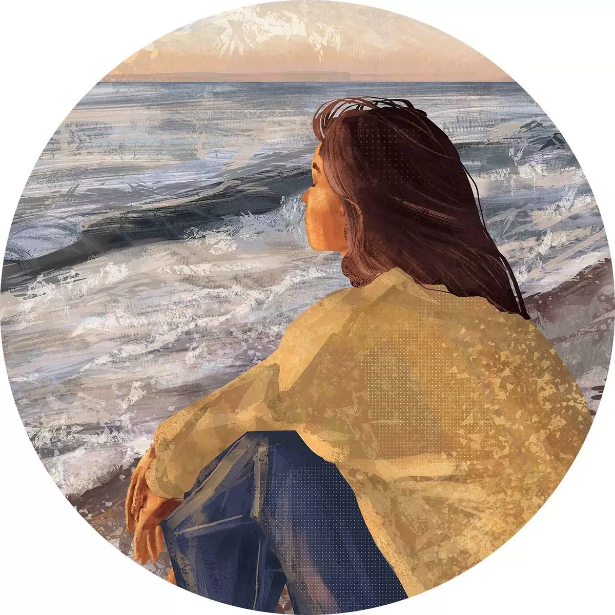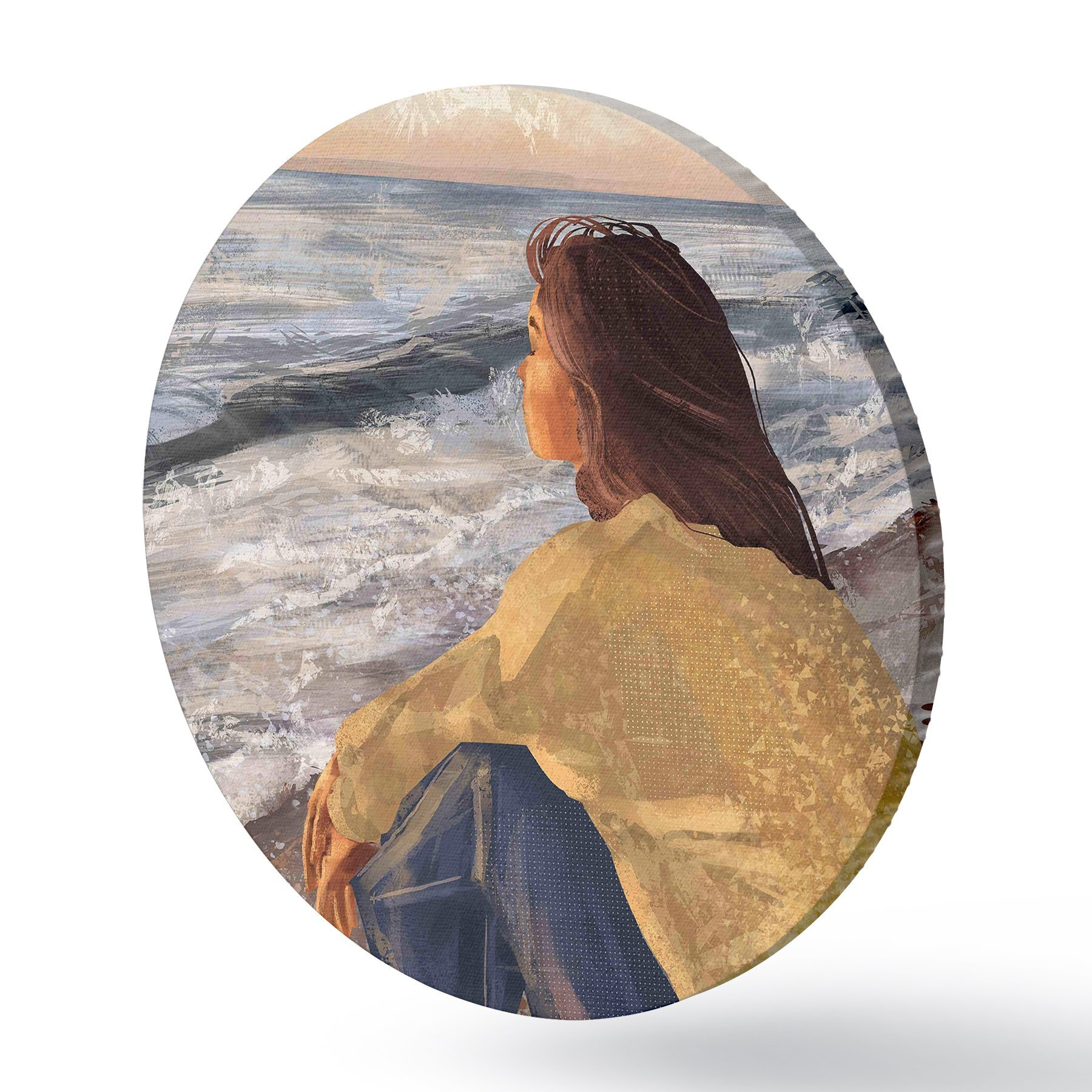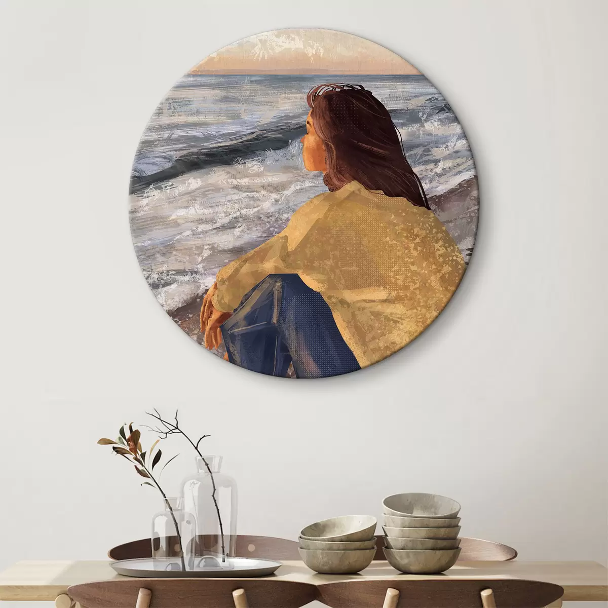 Cuadros redondos Mujer junto al mar, contemplando las olas r35317