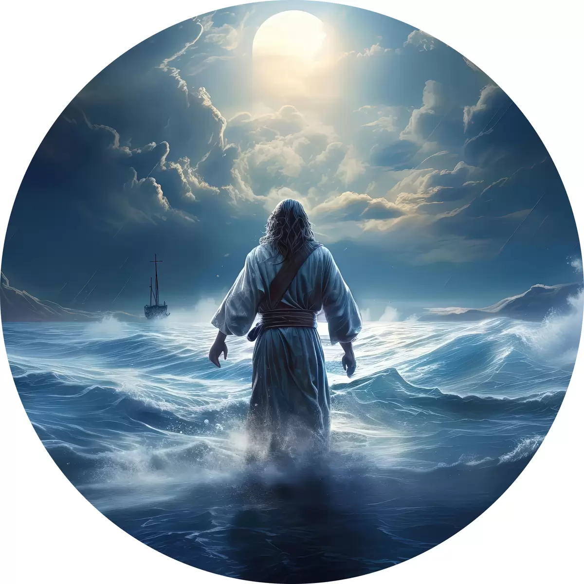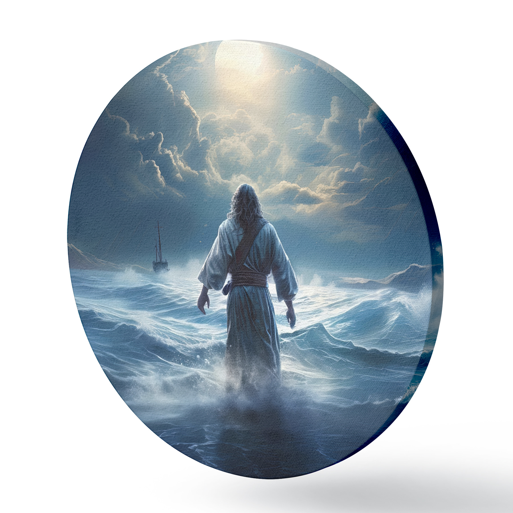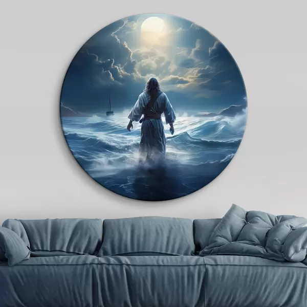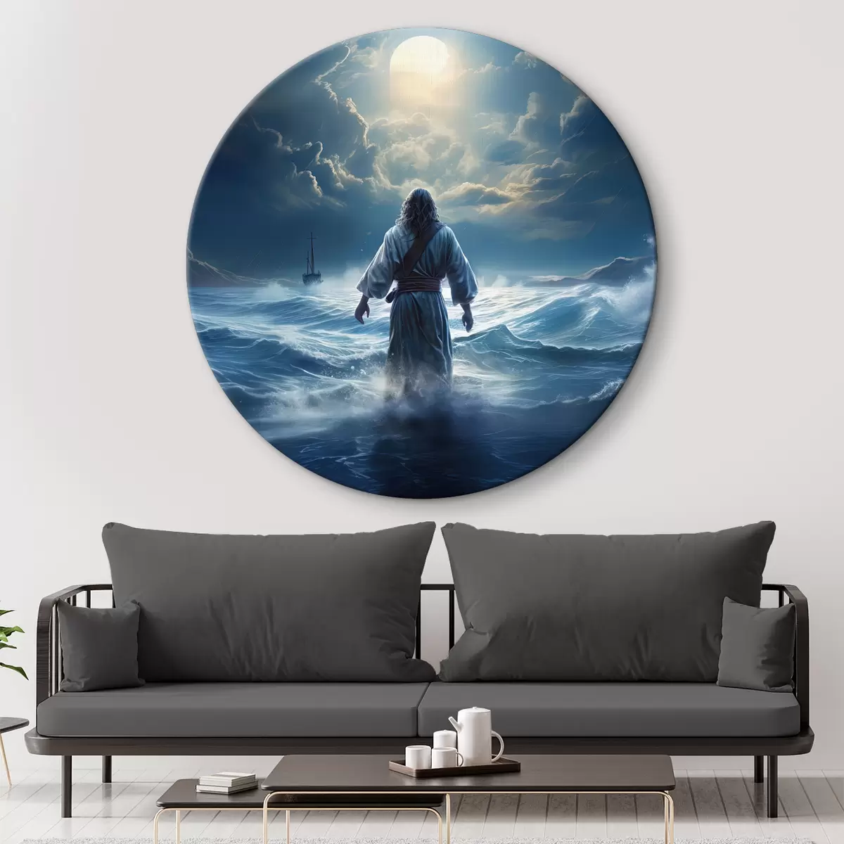 Cuadros redondos Un hombre mirando la luna llena por la noche  r35357