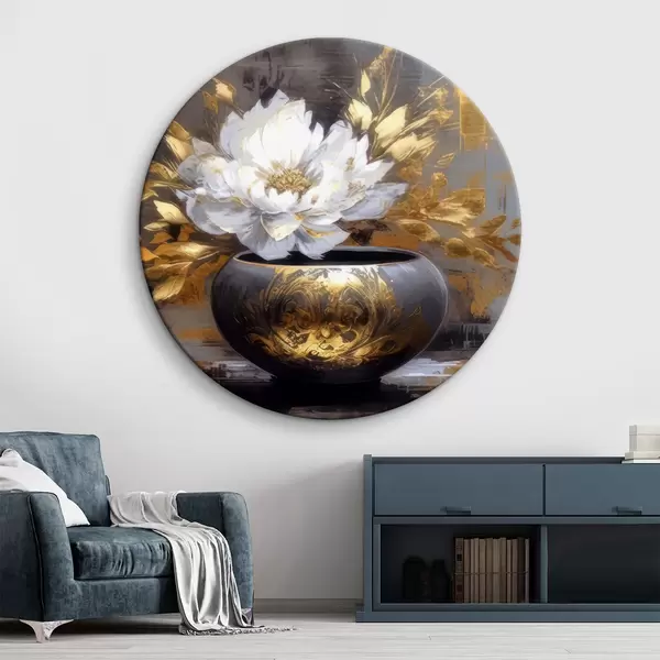 Cuadros redondos Gran jarrón con una enorme flor blanca r35388