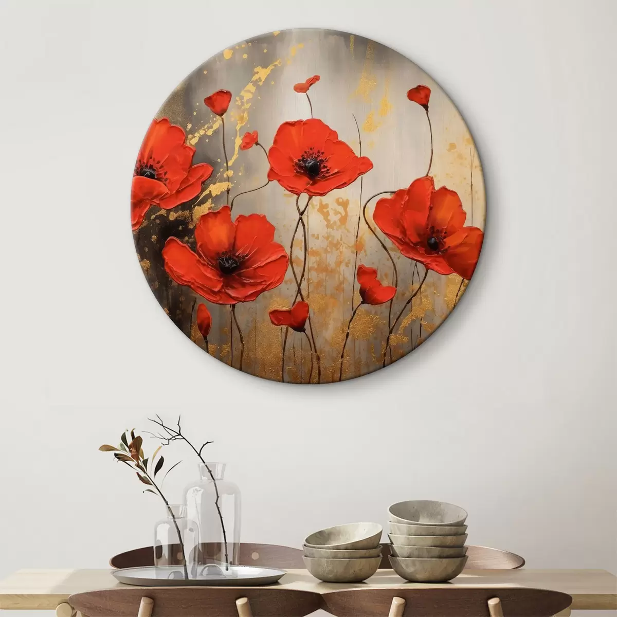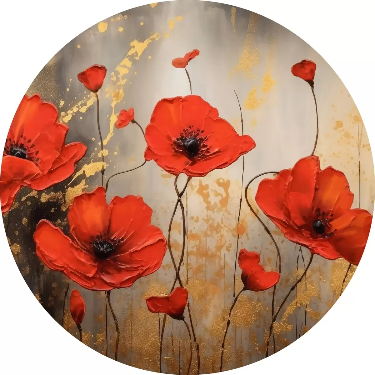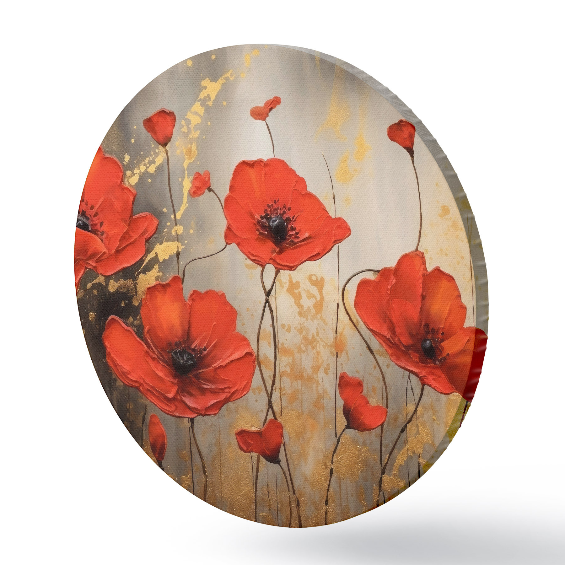 Cuadros redondos Amapolas sobre fondo marrón abstracto r35515