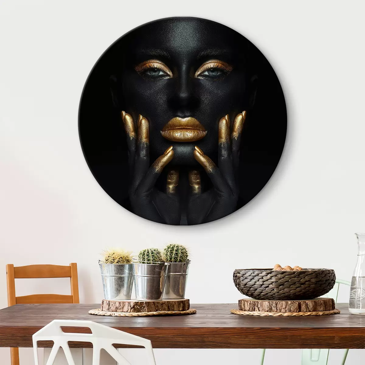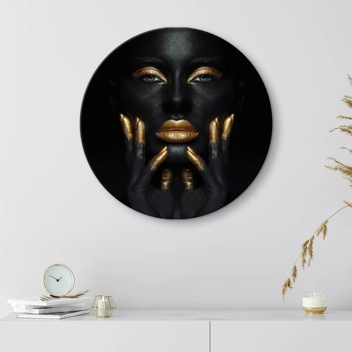 Cuadros redondos Elegante abstracción femenina con oro r35622