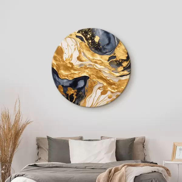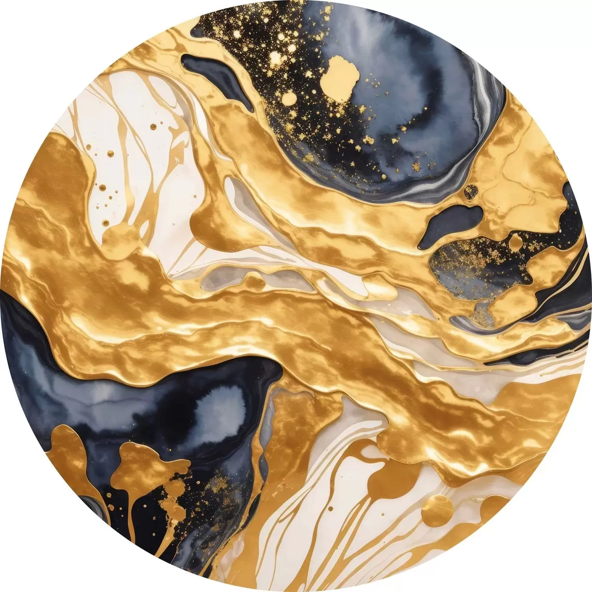 Cuadros redondos Transfusión de colores dorado, blanco y negro r35659