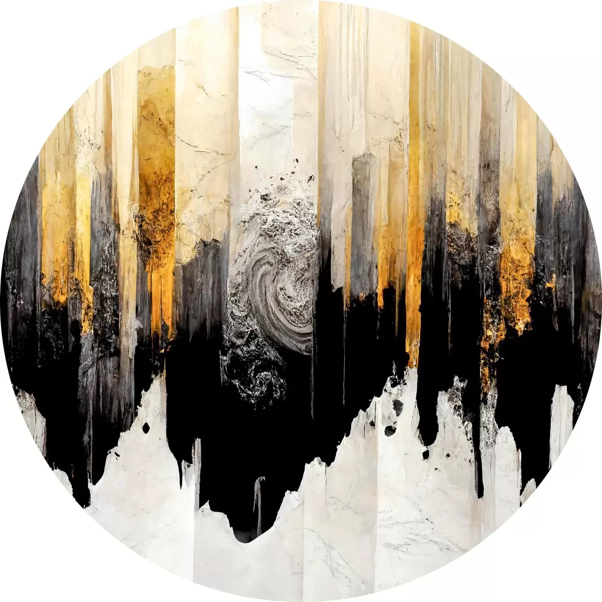 Cuadros redondos Imagen difuminada con pintura blanca, negra y dorada r35735