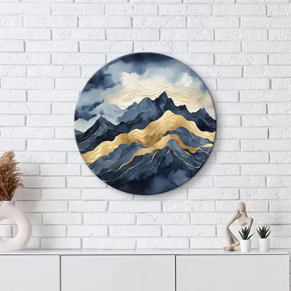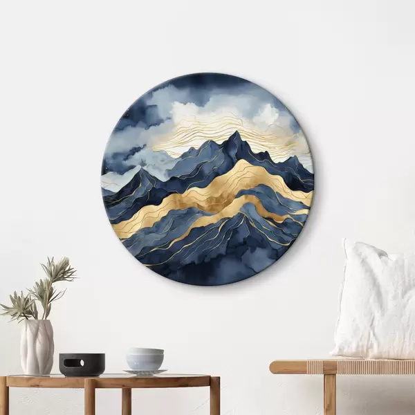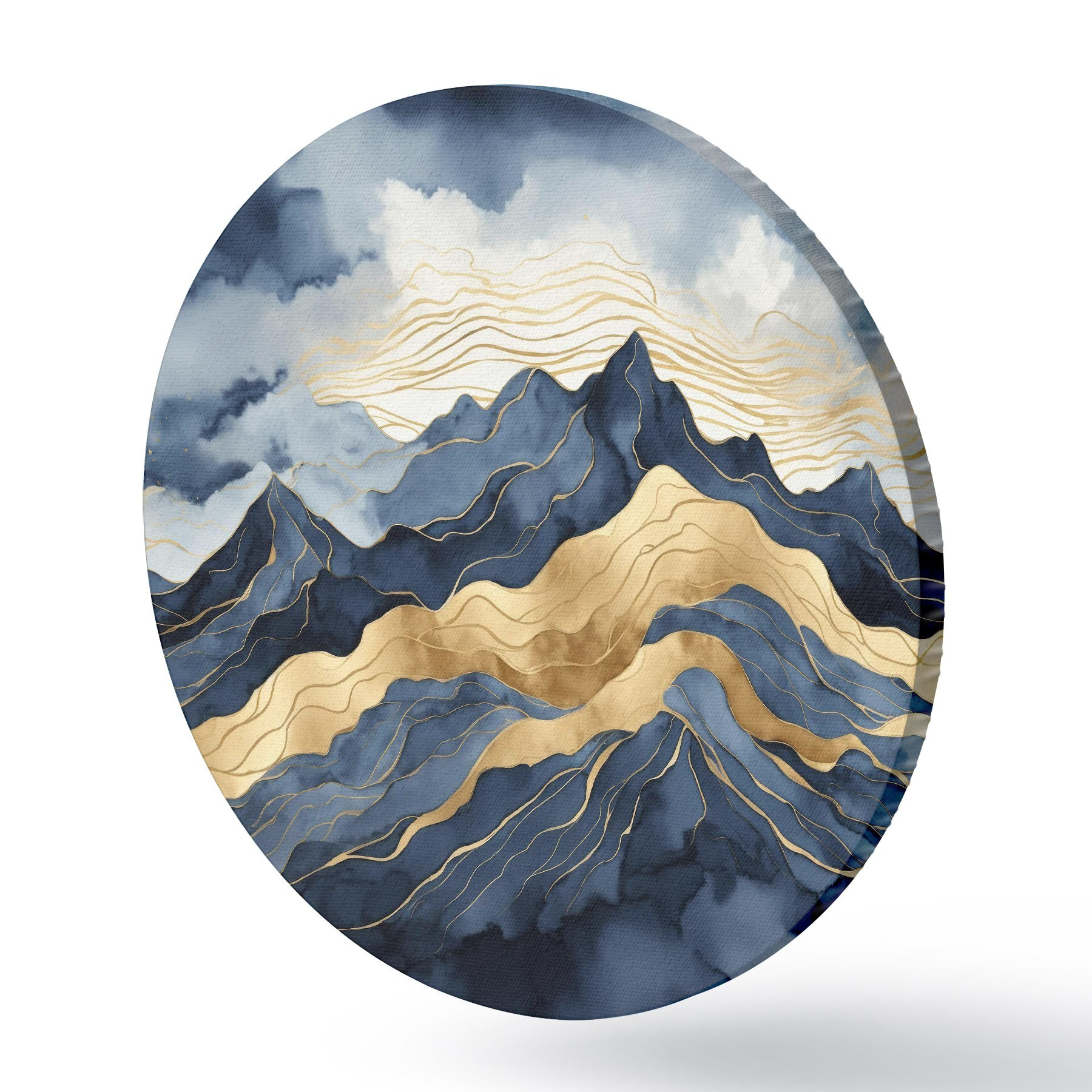 Cuadros redondos Montañas azules y doradas contra el cielo estrellado r35826
